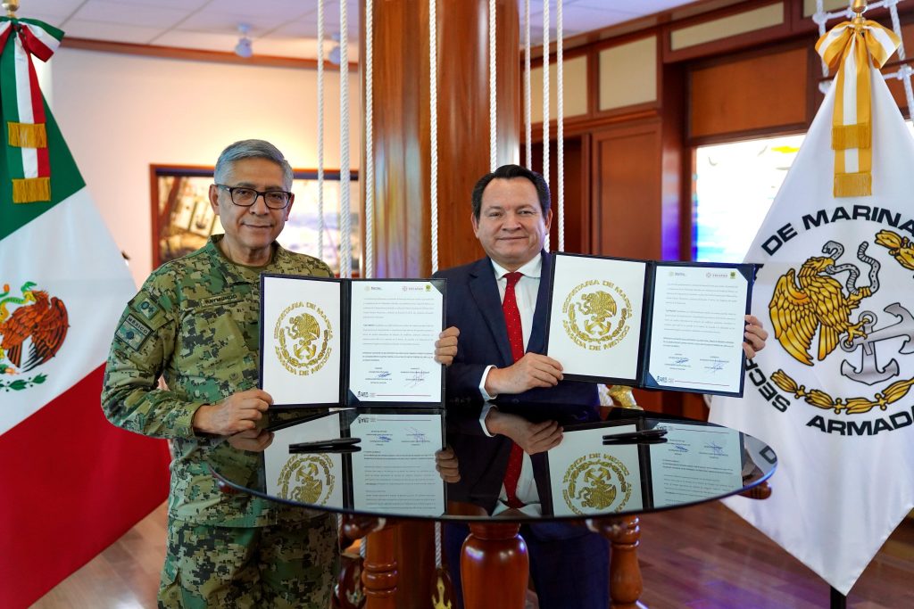 CIUDAD DE MÉXICO, 05/03/2025. —Para mejorar la infraestructura marítima del puerto de Altura de Progreso, el Gobierno de Yucatán y la Secretaría de Marina Armada de México (SEMAR) firmaron un convenio de largo plazo para la modernización del Puerto de Altura de Progreso.