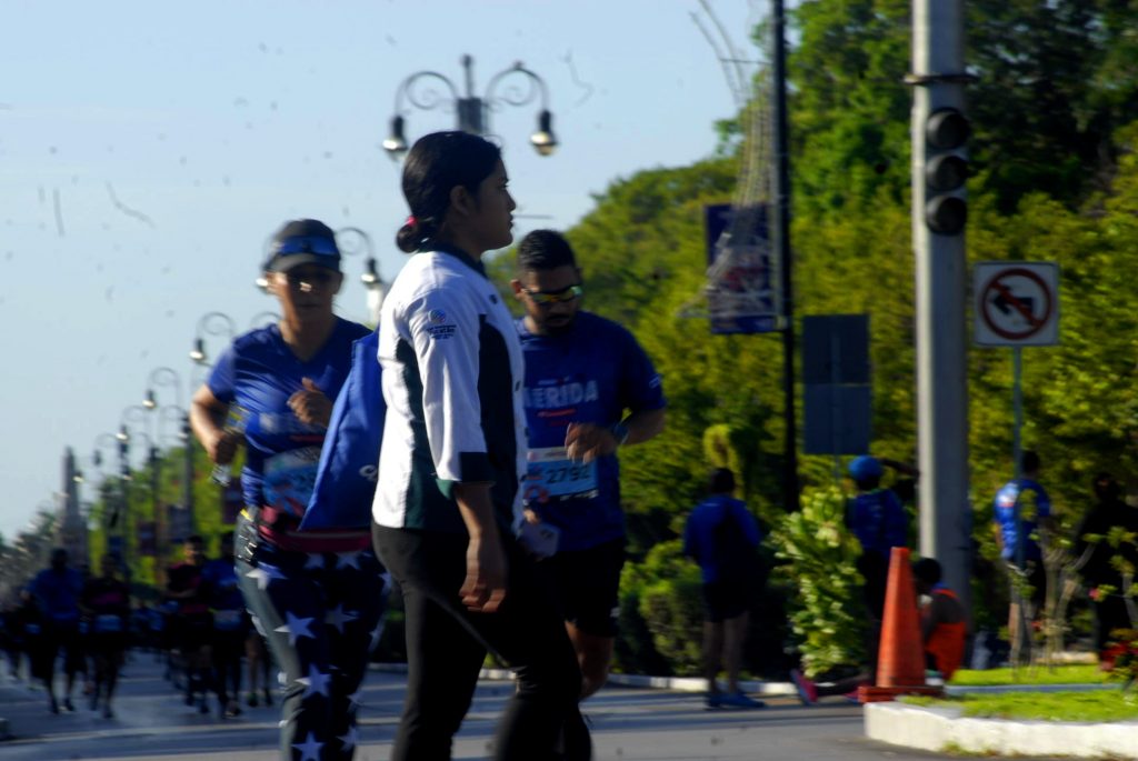 En la larga fila de competidores, al frente, se encontraban los corredores de los 42 kilómetros, luego de solo 21 kilómetros, seguidos de 10 y la camina recreativa, saliendo de Paseo de Montejo, justo al pie del monumento a La Patria.
