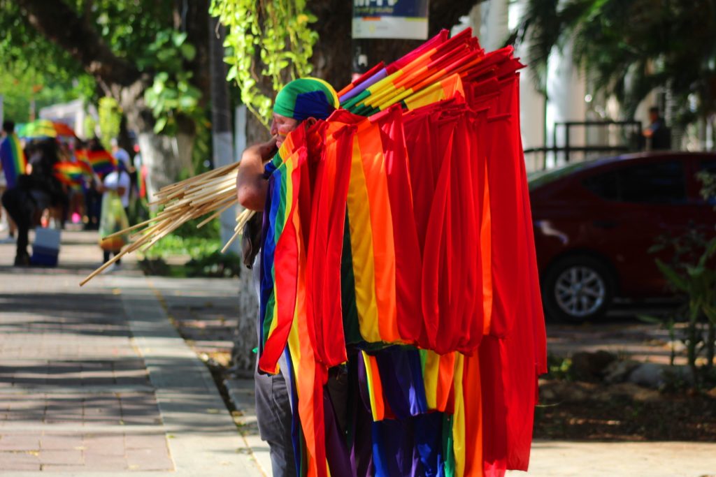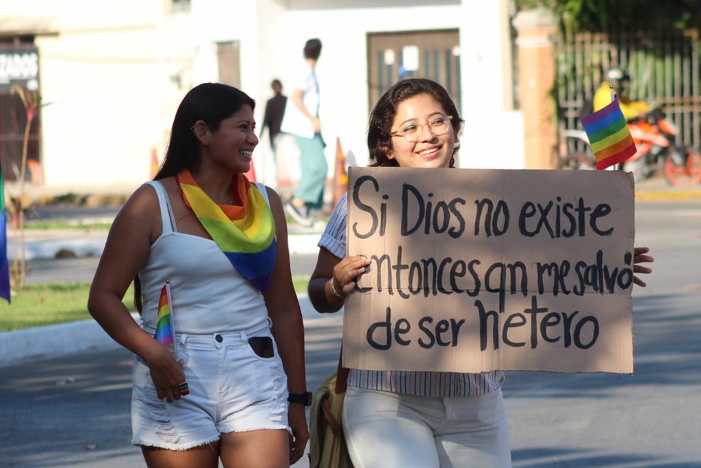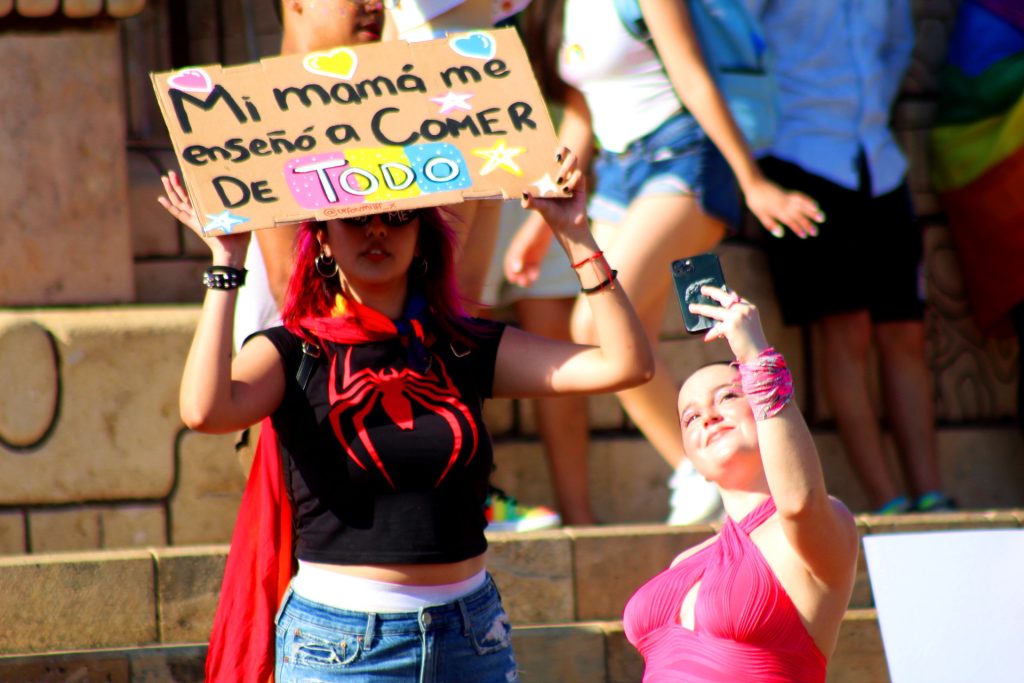 MÉRIDA, YUCATÁN, 10/06/2023. —La lucha por no más discriminación y la dedicatoria a las personas travesti fue parte de la marcha pacífica, en Mérida, por parte de la comunidad LGBTQ+.