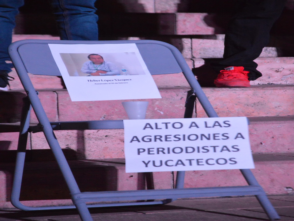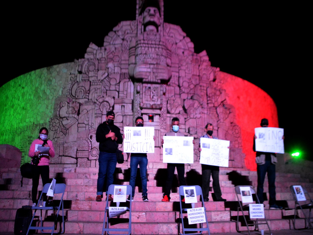 Fueron colocadas cinco sillas, representando a los periodistas que “faltan” en su redacción y en las calles cubriendo los eventos que genera noticias para la sociedad mexicana; y se guardó un minuto de silencio por la muerte de los periodistas.