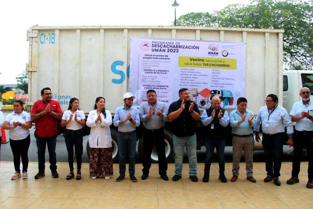 Con la suma de esfuerzos entre el Ayuntamiento de Umán y el Gobierno del Estado de Yucatán se trabaja en la implementación de estrategias para eliminar los objetos que no son útiles y que representan un foco de infección para la reproducción de los vectores transmisores de enfermedades.