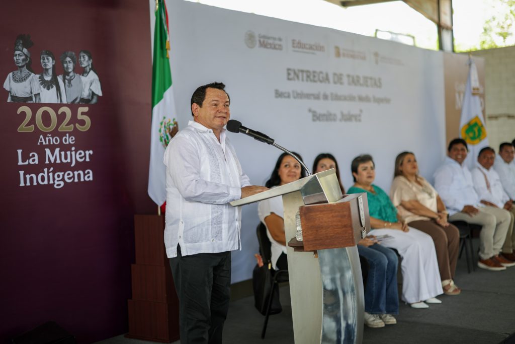 En su turno, el delegado para Programas de Bienestar del estado, Rogerio Castro Vázquez, reafirmó su compromiso con los estudiantes de este nivel educativo. “Sabemos lo que representa una beca para sus familias, no es solo un apoyo, sino el poder tener para completar para su transporte público, para materiales escolares o para alimentación”, dijo.