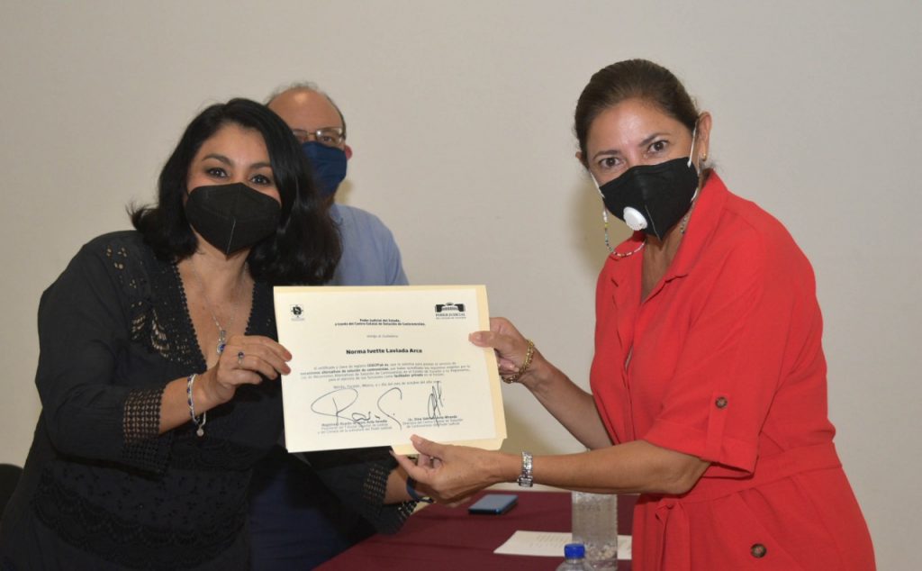Las nuevas mediadoras privadas que obtuvieron su certificación son: Gabriela Alelhí Berzunza Romero, Sandra María Jorge zapata, Roxanna Aracelly Medina recio, Liliana Candelaria Moo Pool, Adda Margarita Tello Cámara y Sisi Zacarías Ojeda.