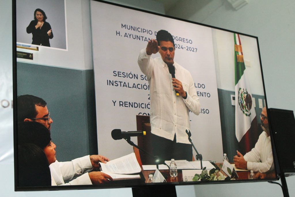 PROGRESO, YUCATÁN, 01/09/2024. —Erik Rihani, tomó protesta como alcalde de Progreso de Castro, en el periodo 2024-2027, en el que se comprometió a mejorar las condiciones del puerto y de la gente.