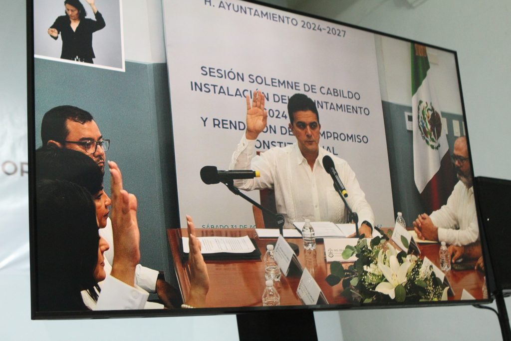 Rihani, además de tomar protesta él, también lo hicieron los 11 regidores que conforma en el cabildo. José Efraín Escalante fue electo como Secretario Municipal.