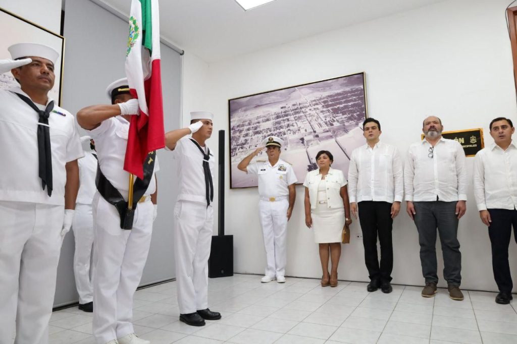 Previamente, una escolta de la Secretaría de Marina realizó los honores a la bandera, y acudieron vecinos y así, como representante del PAN y funcionarios de la pasada administración.