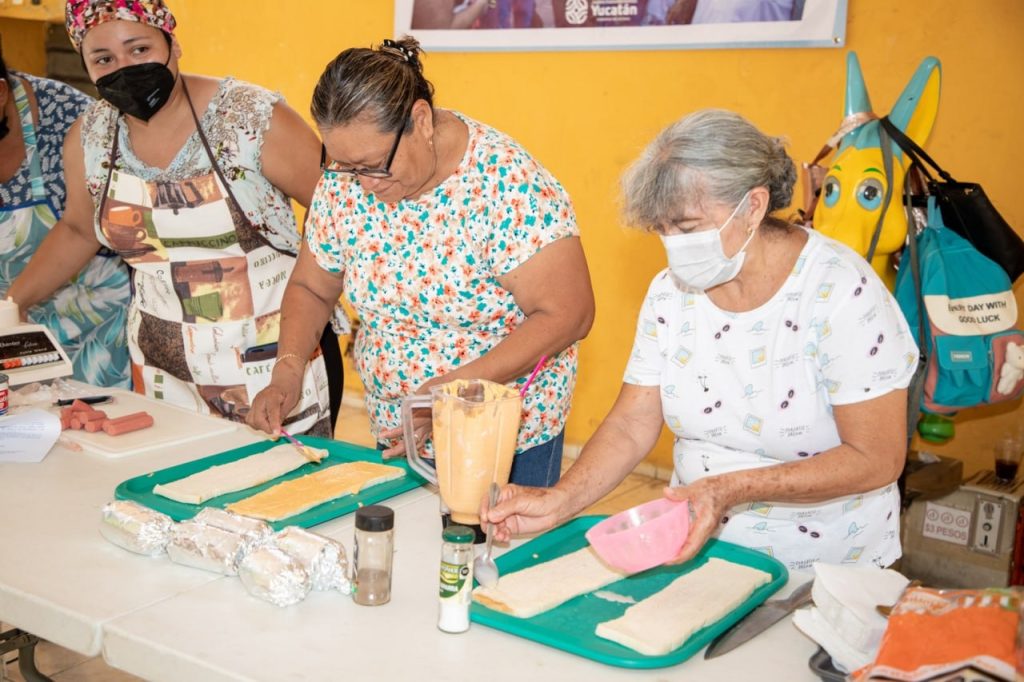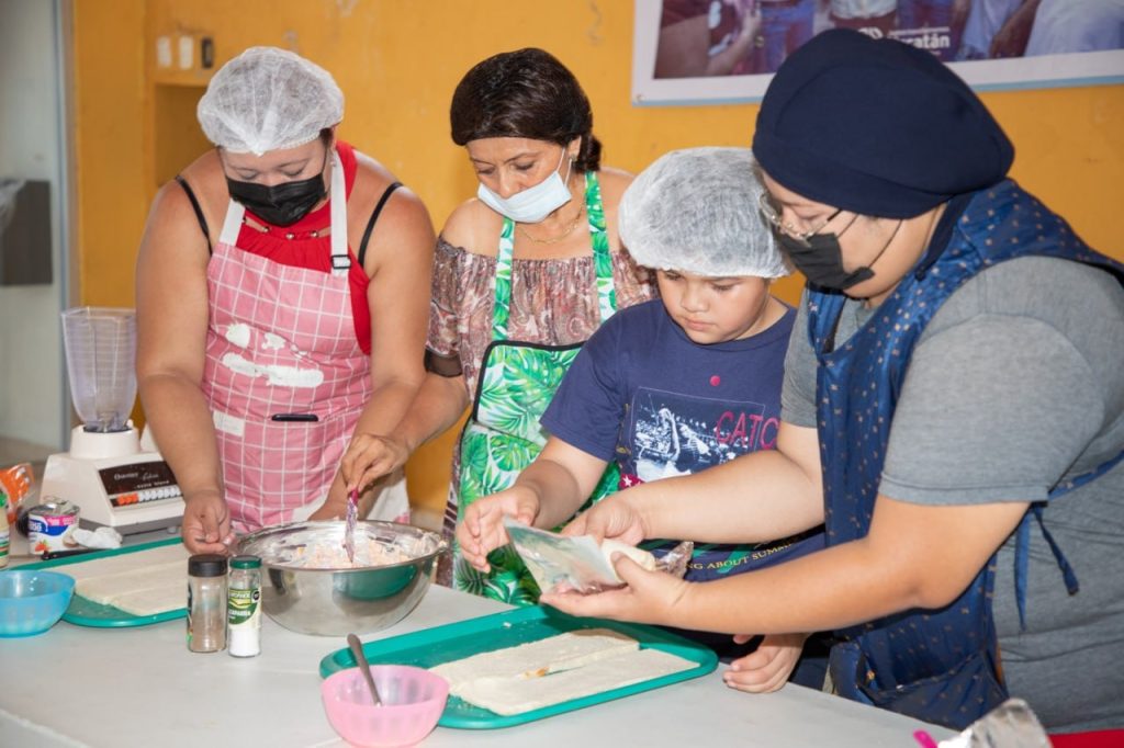 MÉRIDA, YUCATÁN, 23/06/2023. —Como parte de la estrategia “Segey en tu comunidad”, la escuela de Artes y Oficios “Lucia Kan viuda de Luna”, puso a disposición de pobladores de la comisaría de Cholul, una muestra culinaria impartida por los alumnos del taller de cocina y repostería del propio plantel educativo.