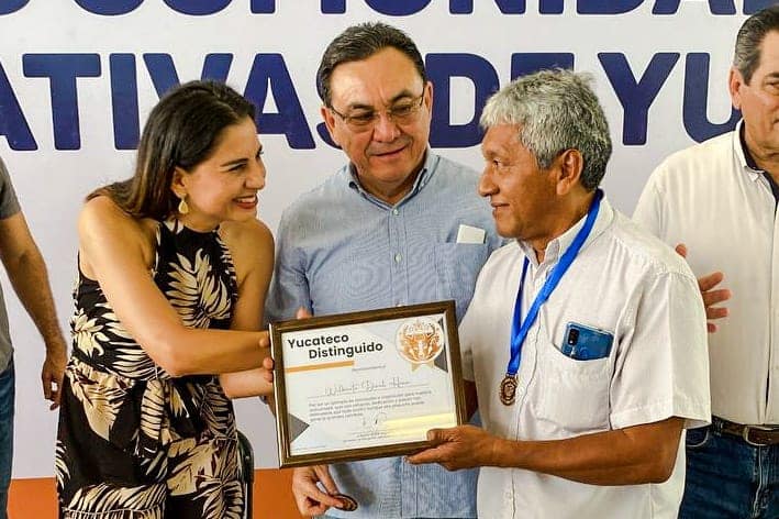 En el marco de este evento, se entregaron las medallas y reconocimientos de “Yucateco Distinguido” al maestro Diego Clemente Várguez Tamay, la ex alumna y docente Marytere Avilez Victoria y el intendente Wilberto Dzul Hau.