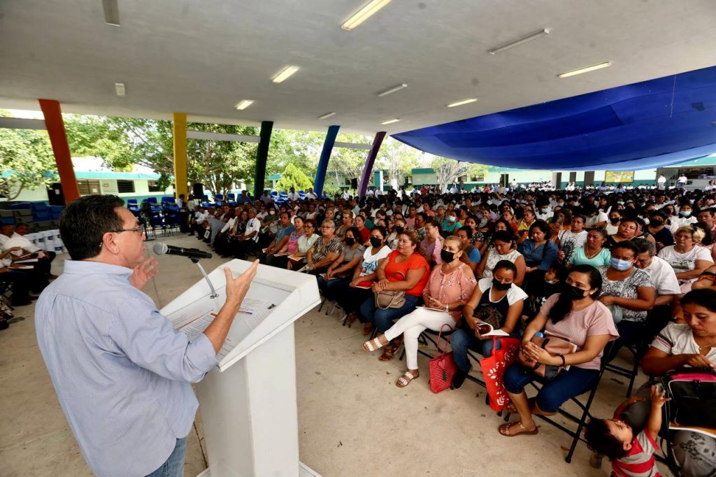MÉRIDA, YUCATÁN, 14/03/2023. —Con el fin de fortalecer los servicios educativos y condiciones del entorno escolar, continúa la entrega de los paquetes, “Mejora tu Secu” en Yucatán.