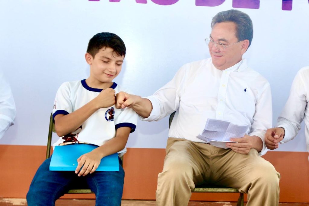 En representación de la sociedad de alumnos, Diego Benjamín Segovia Chan del segundo grado, agradeció los kits “Mejora tu Secu” y dijo que se le dará buen uso para elevar su desempeño escolar.
