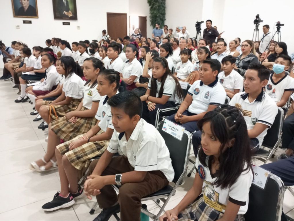 MÉRIDA, YUCATÁN, 24/07/2023. —En el Congreso de Yucatán se realizó el Primer Encuentro Estatal de “Niñas y Niños Promotores de la Paz”, donde los pequeños dieron muestra de la importancia de mediar para la solución de conflictos a través de la mediación; se pretende mejorar la educación cívica desde la escuela primaria.