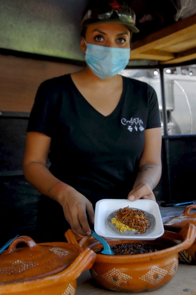 También tacos de carne de borrego, de avestruz, platillos colombianos y para rematar postres, cerveza de raíz, además de la venta de miel y algunas artesanías.