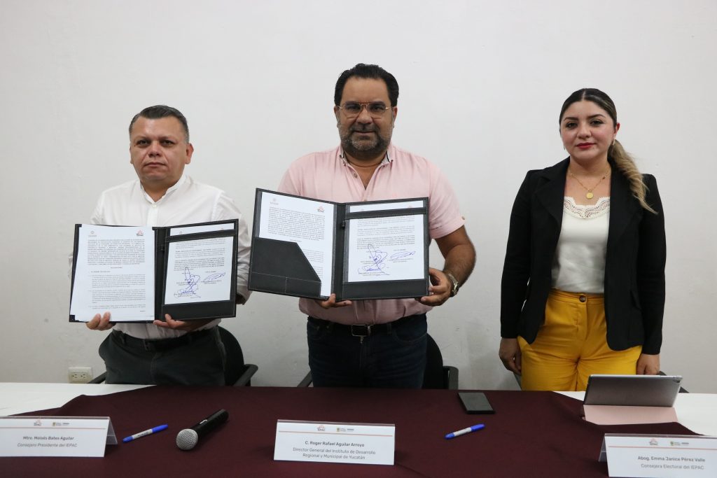 Por lo que, se firmó convenio de colaboración entre el IEPAC y el Instituto de Desarrollo Regional y Municipal de Yucatán (INDERM), encabezado por Roger Rafael Aguilar Arroyo, donde se explicó que las autoridades municipales, así como el Poder Ejecutivo y Legislativo deben presentar su catálogo el 25 de noviembre a revisión.