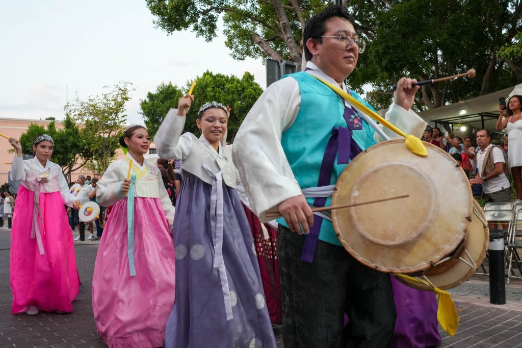 Posteriormente, desfilaron hacia los bajos del Palacio Municipal donde presentaron bailes tradicionales de esta nación, una exhibición de Taekwondo, coreografías de K- Pop, estampas de jaranas y la participación del grupo dancístico Ka’ambal integrados por yucatecos y descendientes de familias coreanas.