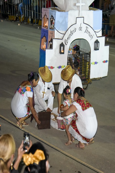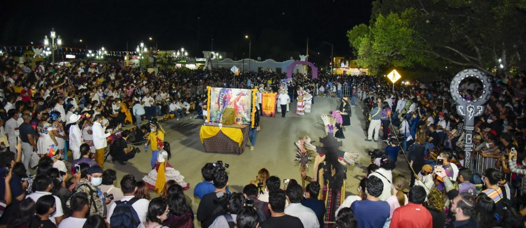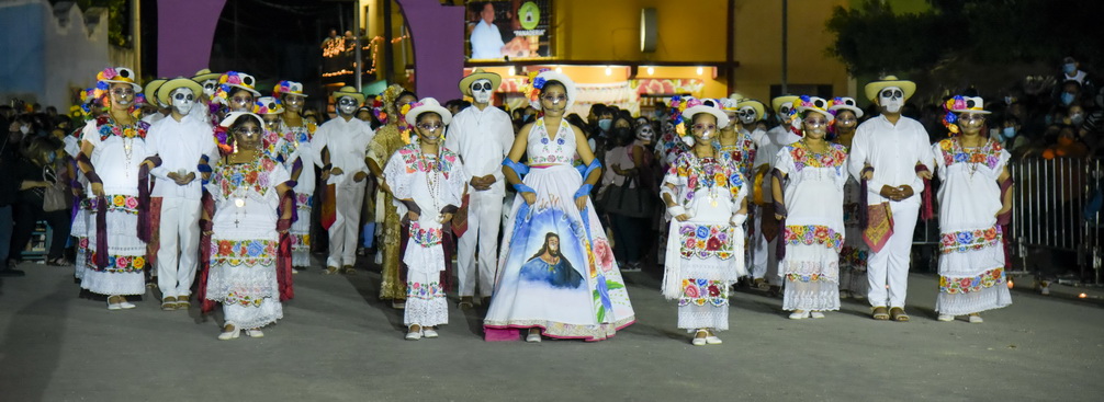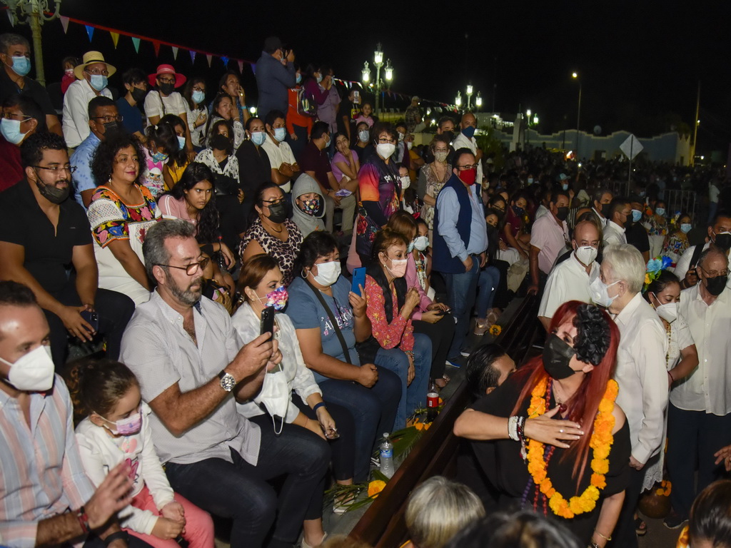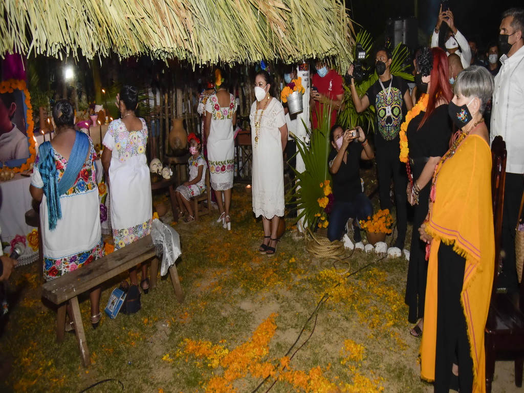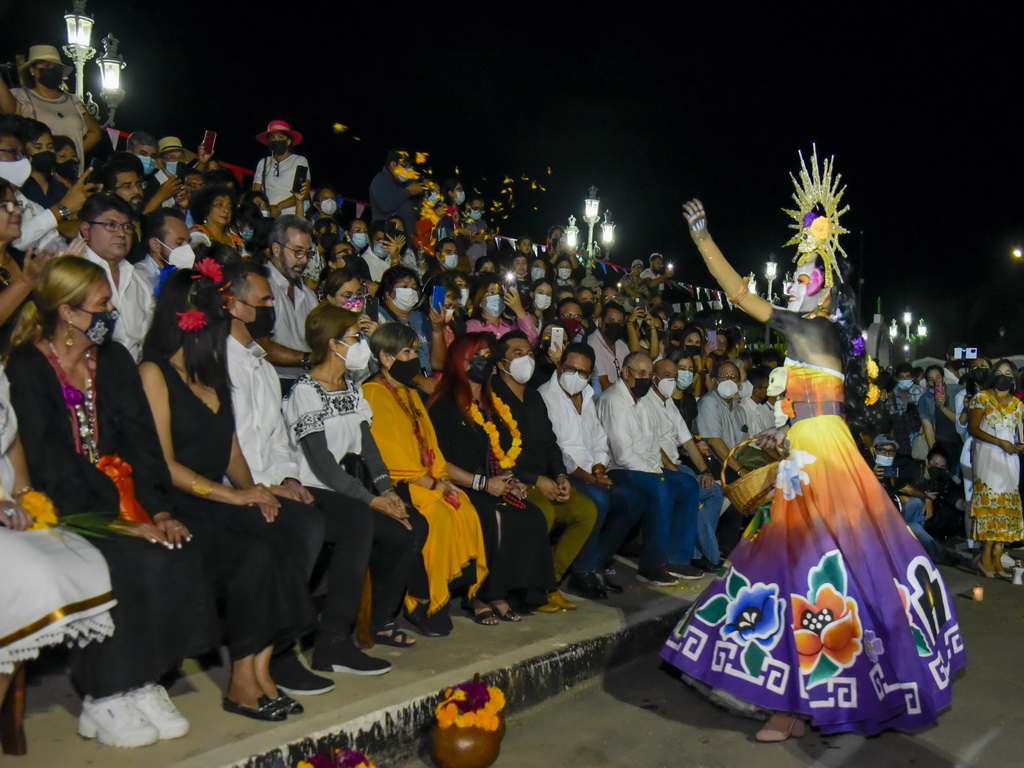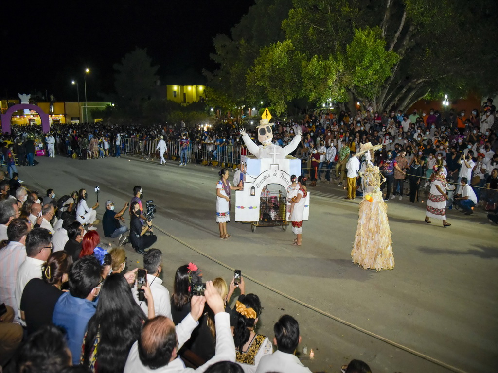 Acompañada del alcalde de Hecelchakán, José Dolores Brito Pech; de la presidenta del Patronato del DIF Estatal, Laura Sansores San Román; y del director de la Fundación Pablo García, Carlos Ucán Yam; la Gobernadora presenció a su llegada el tradicional Paseo de los Pixanes, en el que participaron personajes como Xibalbá, Ah-Puch, la Catarina de Holoch y la Santa Muerte.