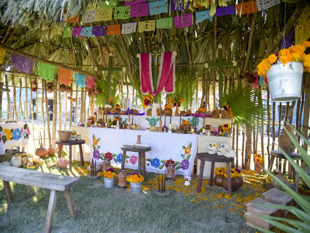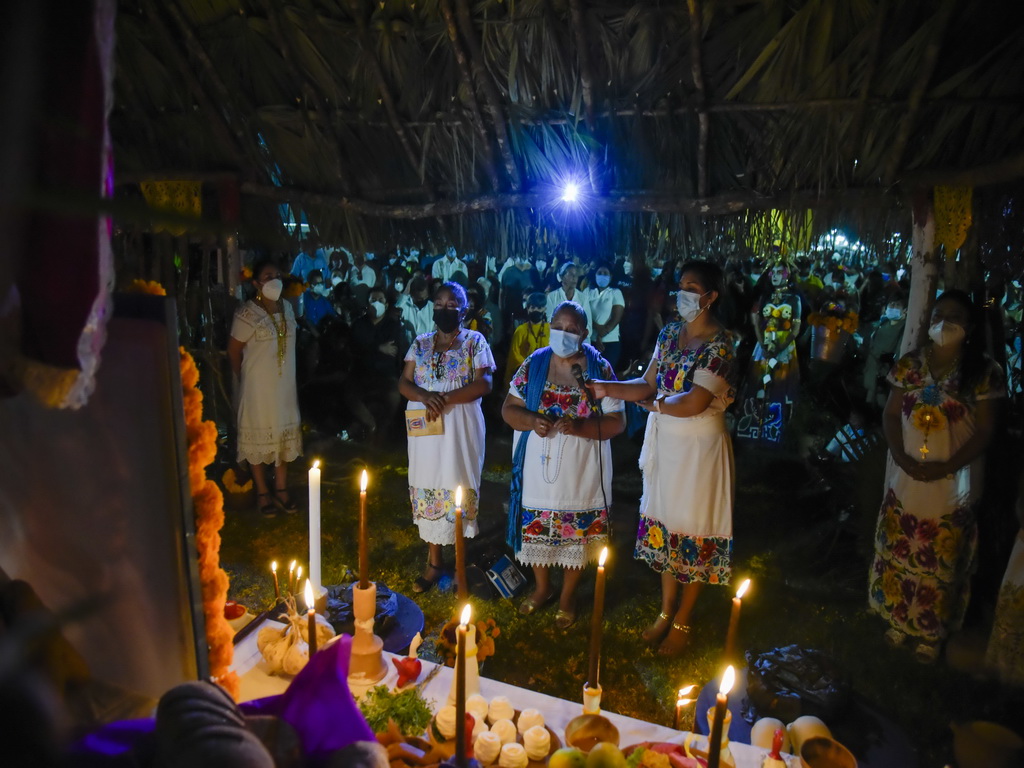 Minutos más tarde, Sansores San Román caminó hasta el altar principal “Nohoch Altar” dedicado al líder indígena Jacinto Canek, ahí en una atmósfera cubierta de incienso, flores y velas, la Gobernadora fue testigo de la entrega del Hanal Pixán a todos los fieles difuntos, mientras un grupo de mujeres pumuchenses rezaba y pedía por el descanso eterno de las almas.