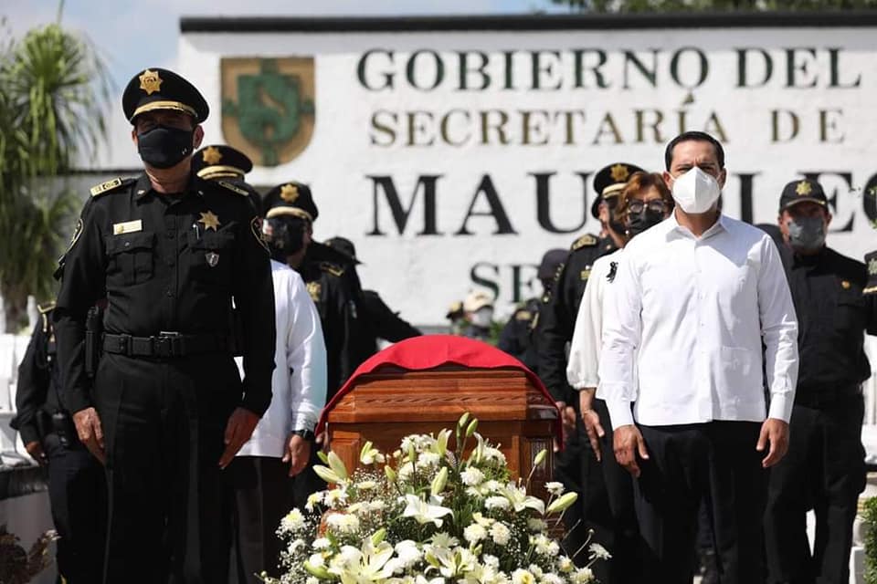 25/07/2021. MÉRIDA, YUCATÁN. –Así fue funeral del oficial Raúl Adrián Couoh Aké, quien en el cumplimiento de su deber perdió la vida, el viernes pasado al enfrentarse con dos hombres y una mujer que fueron detenidos, y que se les relaciona con el asesinato de una mujer.