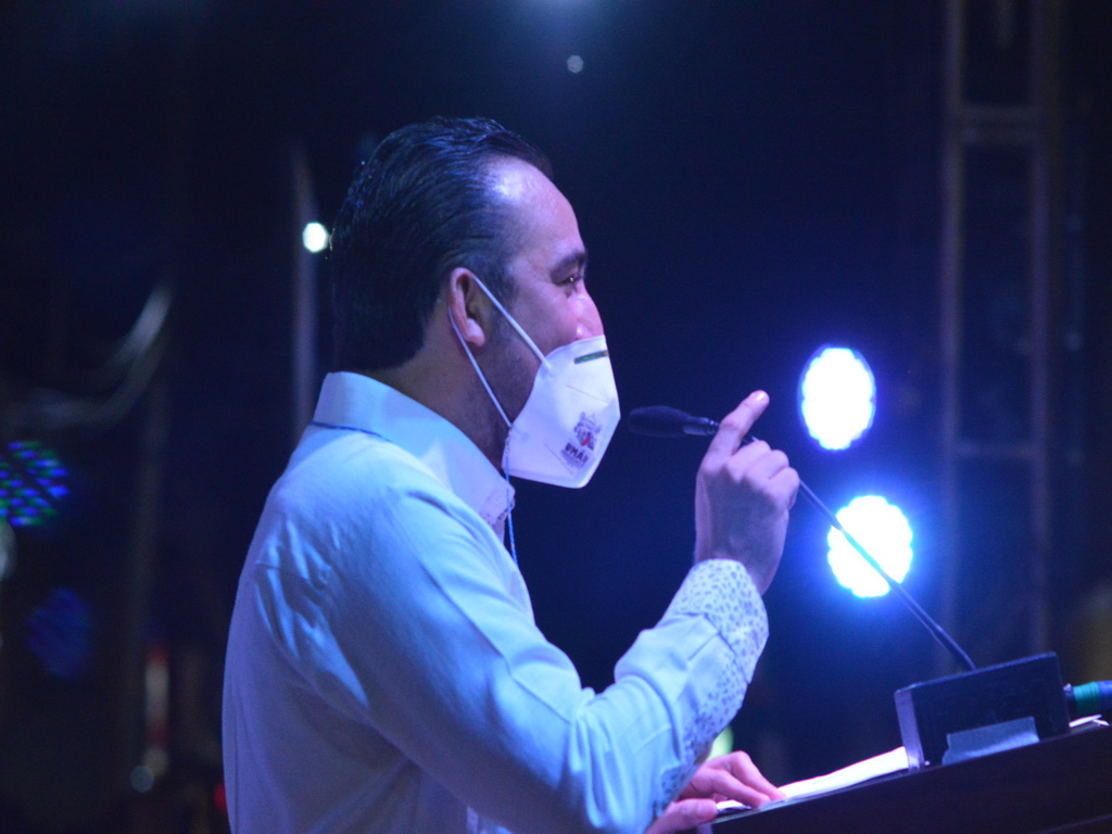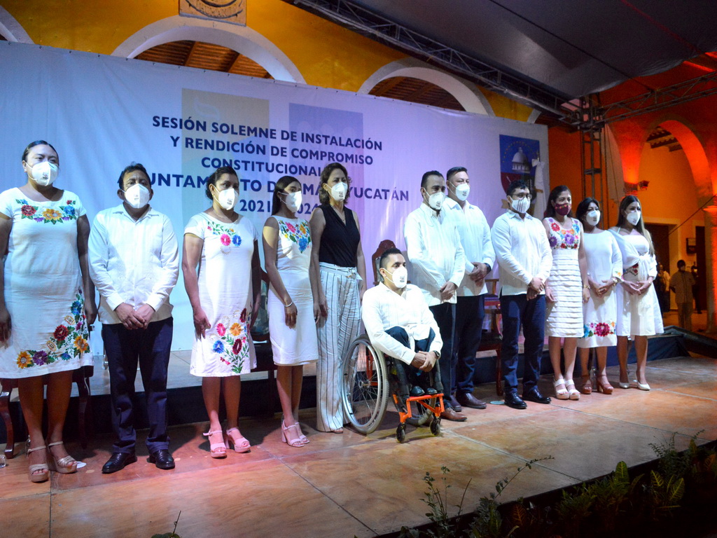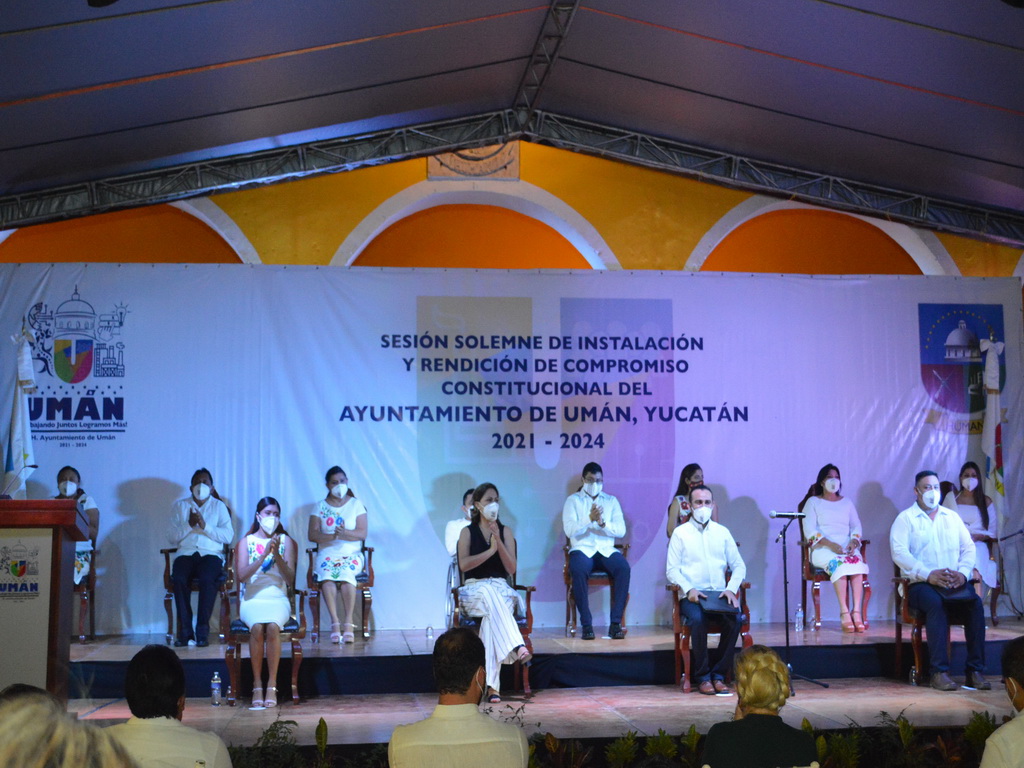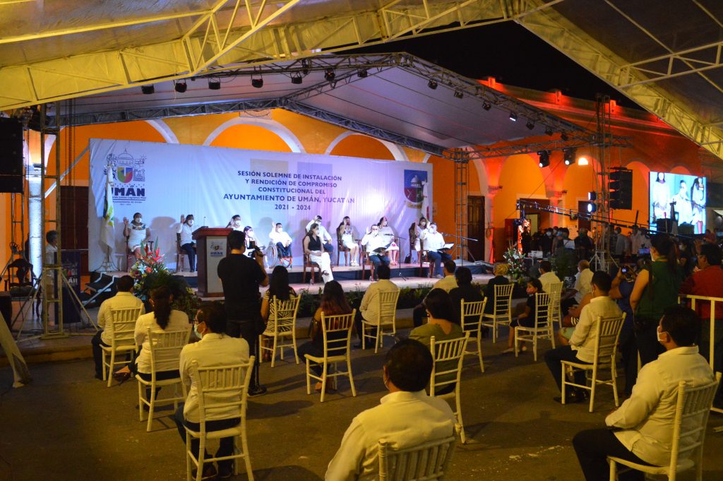 02/09/2021. -UMÁN. La noche del miércoles afuera de palacio municipal de Umán, se realizó la primera sesión de cabildo de la nueva administración, tomando protesta el alcalde Gaspar Ventura Cisneros Polanco, por el periodo 2021-2024.