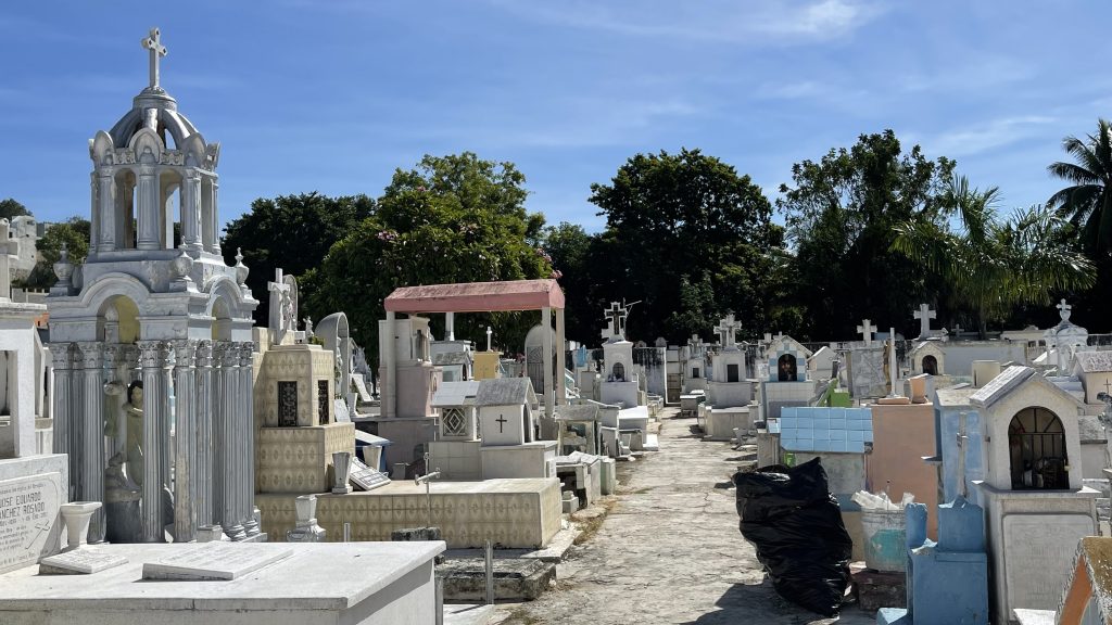 CAMPECHE, 23/10/2023. — Son 347 sitios de interés que han verificado en octubre para evitar riesgos sanitarios entre los campechanos, previo a las festividades. Inspeccionan en cementerios la limpieza y eliminación de criaderos de mosquitos del dengue.
