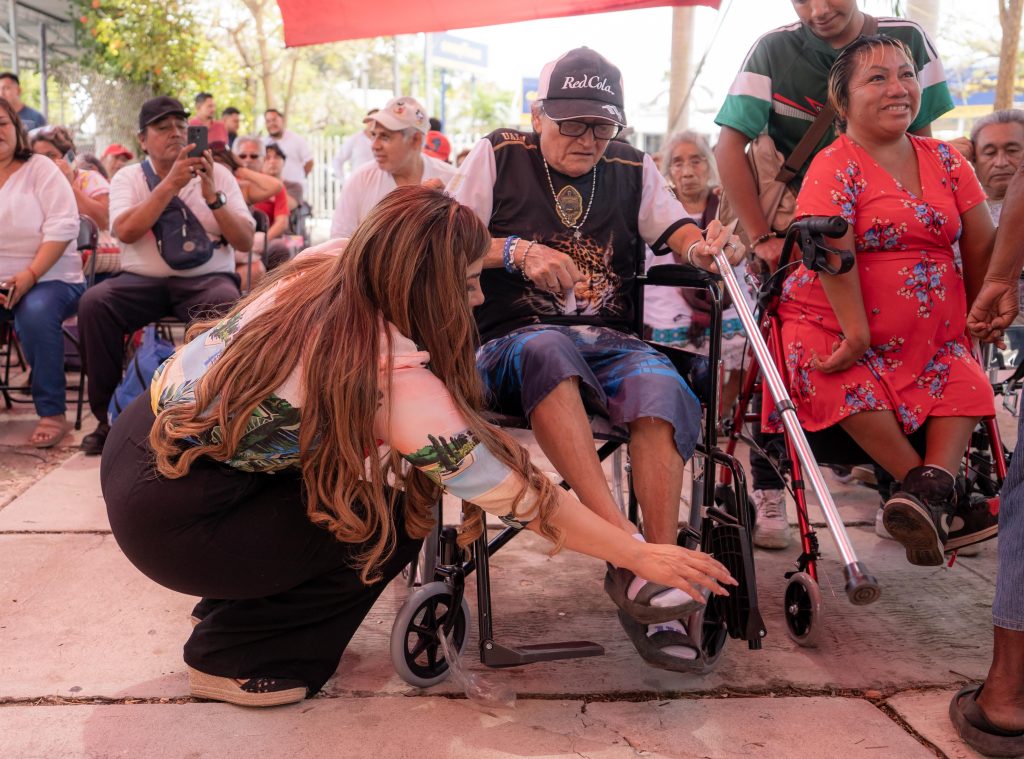 María Maricela Chi Pech, quien recibió una andadera rollator, apoyo solicitado durante años y es la primera vez que fue atendida tan rápido. “Estoy muy agradecida con la presidenta por seguir ayudando a quienes más lo necesitamos y por hacer de verdad una diferencia”, comentó.
