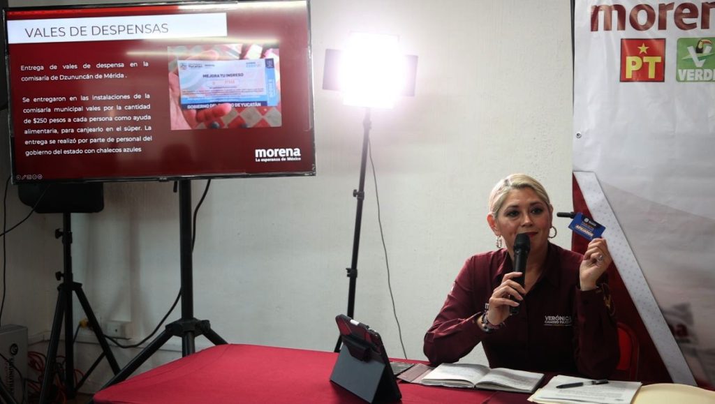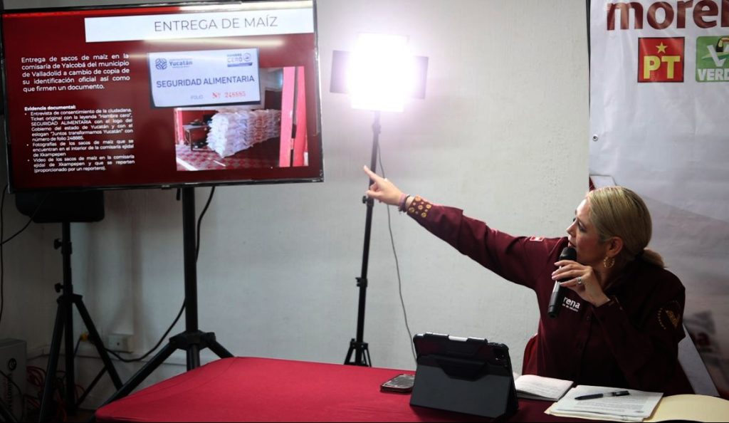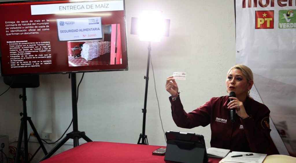 Sobre el presunto uso indebido de recursos públicos, Verónica Camino señaló que le entregaron un vale de “Seguridad Alimentaria” para maíz, que el mismo gobierno de Yucatán está repartiendo en comunidades rurales en pleno proceso electoral, a través de los presidentes o presidentas municipales del PRIAN o alguno de sus colaboradores vestidos con chalecos azules.