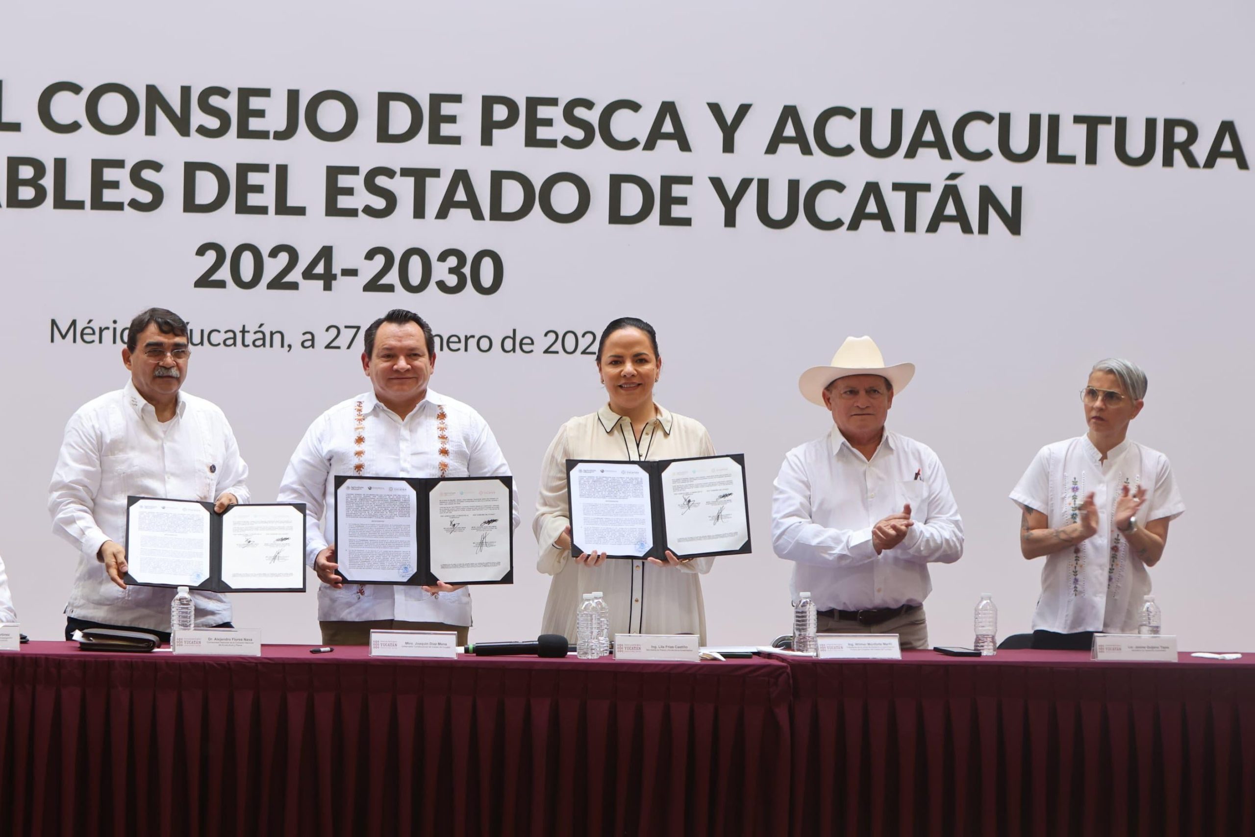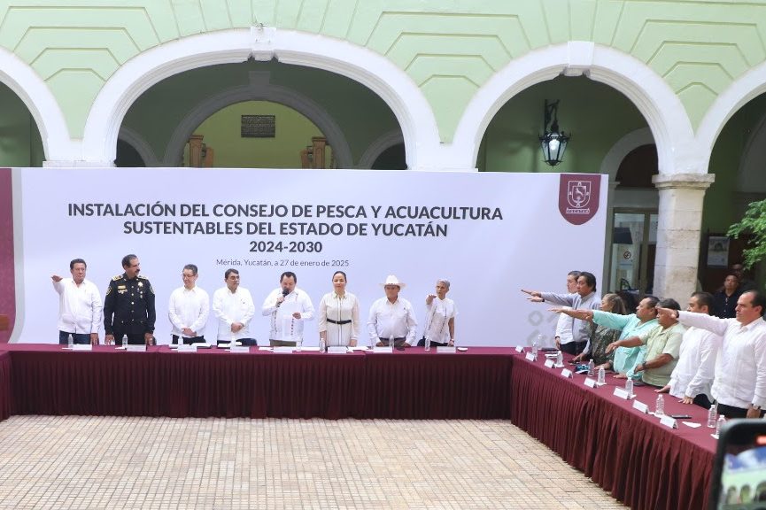 MÉRIDA, YUCATÁN, 27/01/2025. —El Gobierno de Yucatán, realizó la instalación del Consejo de Pesca y Acuacultura Sustentables, en las que se pretende combatir y castigar severamente a las personas relacionadas con la pesca furtiva.