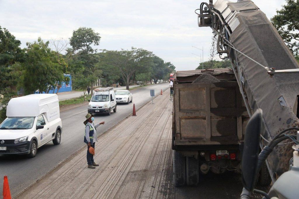 También se está interviniendo el tramo que parte del kilómetro 9+800 antes de la rampa de bajada del paso superior vehicular X’matkuil hasta el kilómetro 11+250, frente a las bodegas de Slakami.