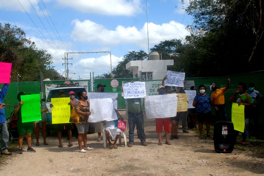 IZAMAL, 18/02/2022. -Ya no soportan el olor. Este día, habitantes de la comisaria de Sitilpech, municipio de Izamal, se manifestaron en el ingreso de la granja de puercos debido a la contaminación que están generando tanto en el agua y aire.