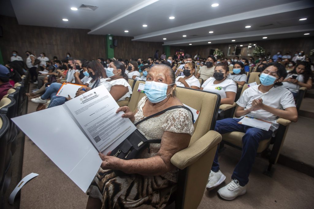 Mérida, Yucatán, a 28 de junio de 2022.- Desde adolescentes hasta personas de casi 80 años, recibieron su certificado por haber culminado satisfactoriamente la primaria o secundaria en los Centros de Educación Básica para Adultos (CEBA), quienes representan historias de superación e inspiración para las personas que desean retomar sus estudios y cumplir sus metas.