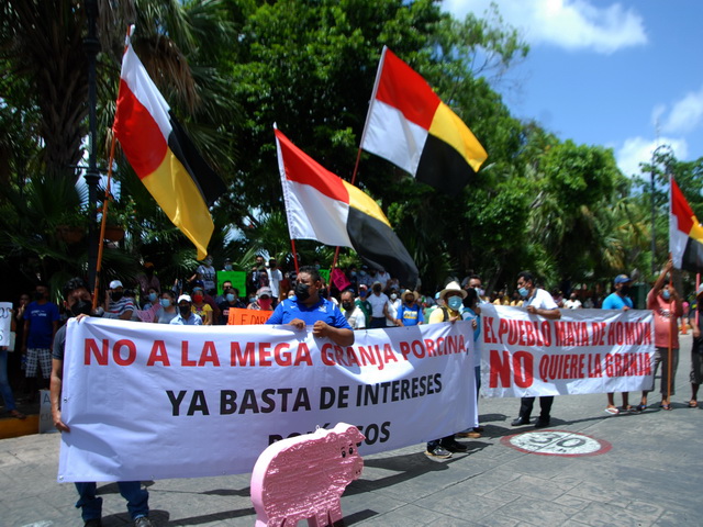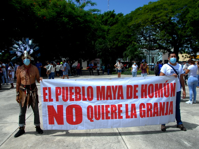 “Creemos que es hora que el gobierno estatal de Yucatán que usted encabeza (Mauricio Vila Dosal) se posicione ante los atropellos que la mega fábrica de cerdos, han estado haciendo en los últimos años pisoteando los derechos de los mayas de Homún, y de otros pueblos. Que diga su palabra el gobierno estatal de Yucatán, reconocerán el resultado de las consultas y si seguirá avalando los permisos para la mega fábrica de los cerdos continúen imponiéndose en nuestros territorios” dijo Martina Ramírez Soberanis, habitante afectada.