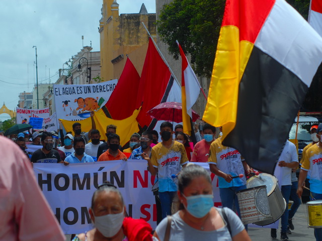 “Estas personas de las empresas, compañeros, no quieren a Homún, quiere la granja, hicimos nuestra consulta y el pueblo de Homún dijo que no, y no, y seguimos diciendo que no, y defendemos el agua por el futuro de los niños (…) vamos a seguir en la lucha, señores, unidos y otros pueblos seguimos unidos y defendemos el agua más sagrada, compañeros, vamos a la lucha”, dijo unos de los inconformes.
