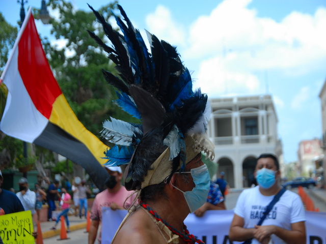 03/08/2021, Mérida. -Habitantes del municipio de Homún, acudieron a Palacio de Gobierno de Yucatán para exigir al gobernador que no sé involucre en el intento de abrir la mega granja de puercos de la empresa Alimentaria Porcicola (Papo).