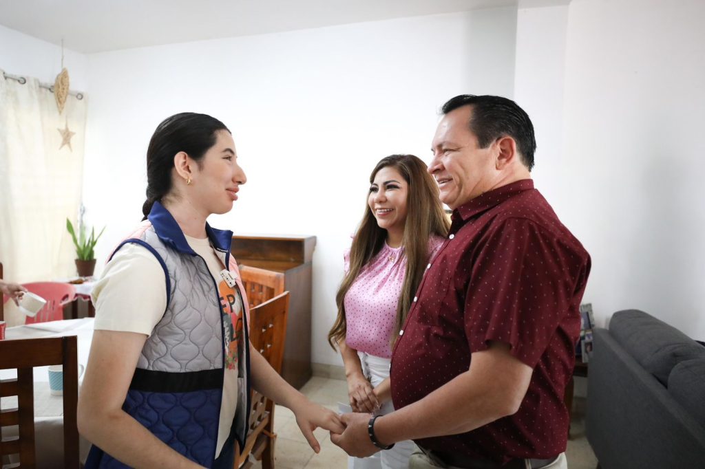 Díaz Mena reconoció a Majo, que lo que está logrando con sus estudios es admirable y que la dedicación de Maribel como madre y comerciante es un ejemplo para muchas familias. Además, aprovechó la ocasión para darles una importante noticia: la firma del convenio para universalizar la Pensión para Personas con Discapacidad, realizado el pasado domingo junto a la doctora Claudia Sheinbaum, consistente en un apoyo económico bimestral superior a los 2,900 pesos.
