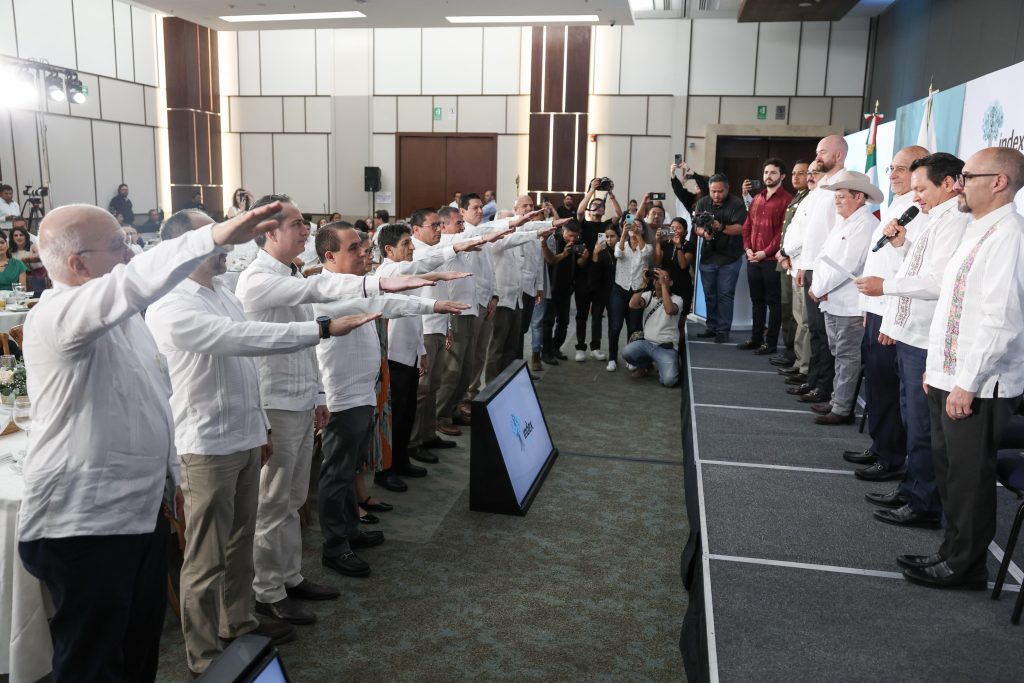 >>>El Gobernador Joaquín Díaz Mena encabezó la toma de compromiso del presidente entrante de Index Yucatán, Ángel López Rodríguez, y su mesa directiva para el periodo 2025-2026.