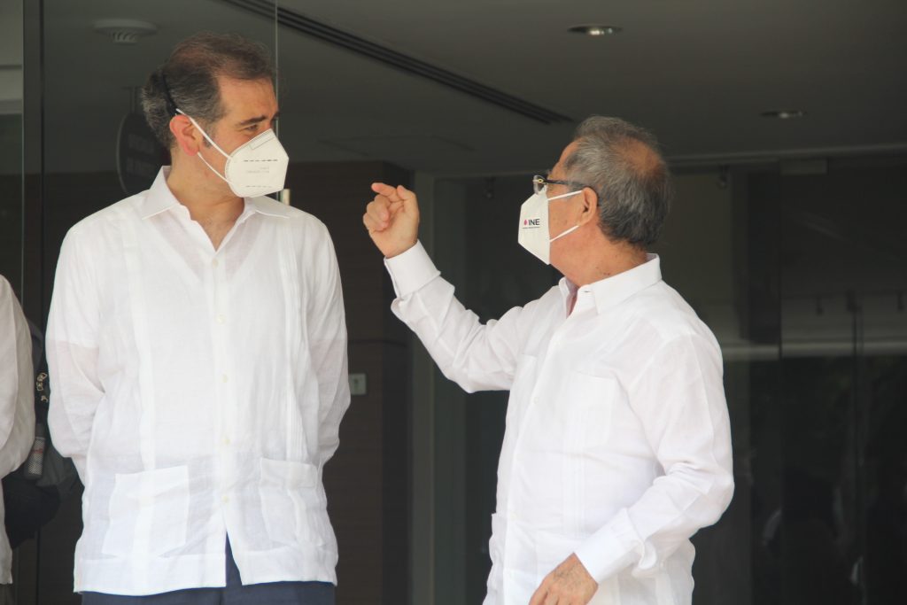 El presidente del INE, Lorenzo Córdoba junto con el vocal en Mérida, Fernando Balmes Pérez.