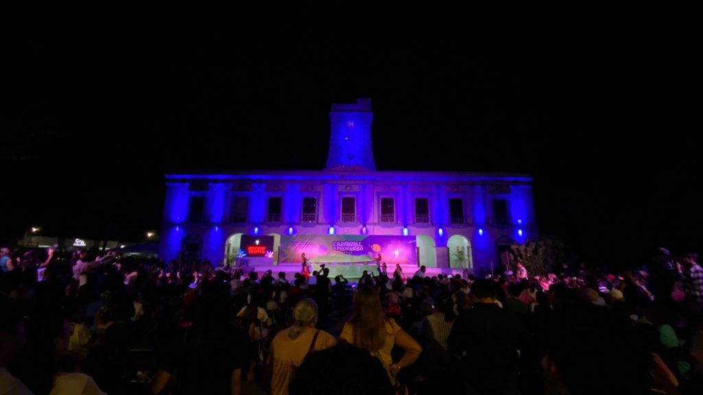 PROGRESO, YUCATÁN, 09/03/2023. —Decenas de familias se reunieron a las afueras del Palacio Municipal de Progreso para presenciar la Quema del Mal Humor, representado por un “tritón”, y así abrirle las puertas a la algarabía del Rey Momo; evento al que acudió el alcalde Julián Zacarías Curi e integrantes del Comité del Carnaval de Progreso 2023.