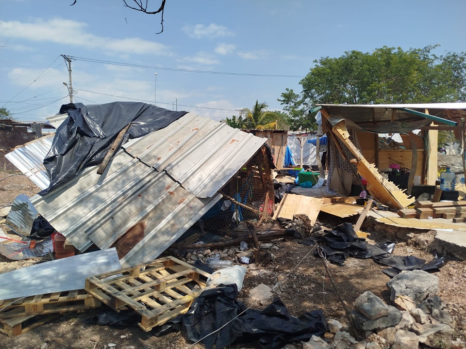 >>>Vecinos vieron como derrumban sus casas de madera, cartón y lamina; además de siete personas herida debido a que fueron lanzadas piedras.