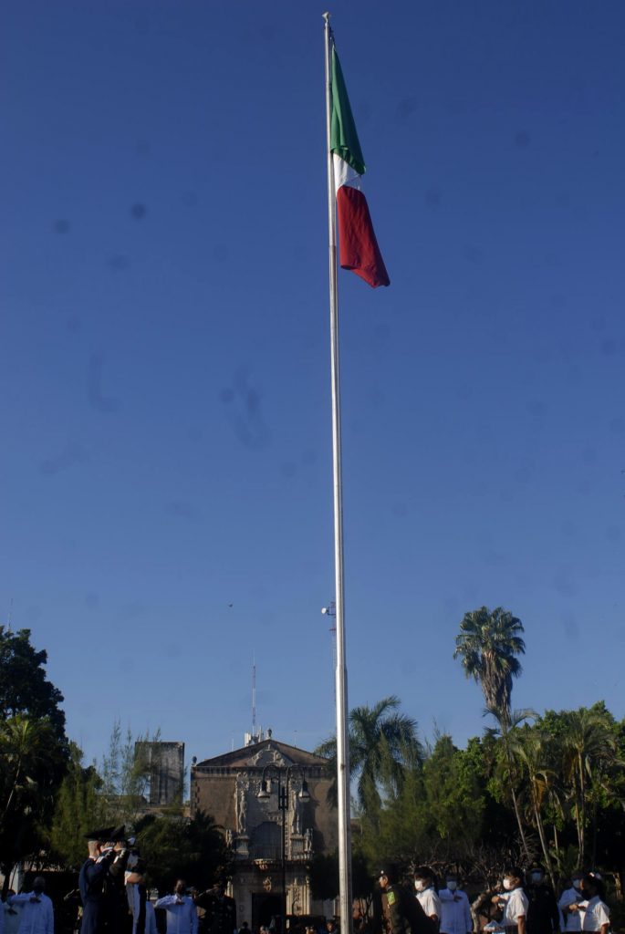 María Fritz Sierra, secretaria de Gobernación de Yucatán, encabezó el izamiento de bandera este inicio de semana, y se entonó el himno nacional.