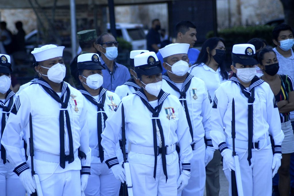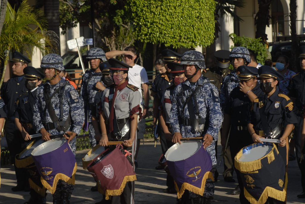 El comandante de la X Región Militar, el General de División DEM, Homero Mendoza Ruiz, el comandante de la 32° Zona Militar, general de brigada DEM; Saúl Luna Jaimes, el comandante de la Base Aérea Militar (BAM) 8, el general grupo piloto aviador DEM Aéreo, José de Jesús Morán Gutiérrez, el comisario de la Guardia Nacional en Yucatán, Domingo Tito Bahena Salgado, y escolares, estuvieron presentes en el acto cívico.