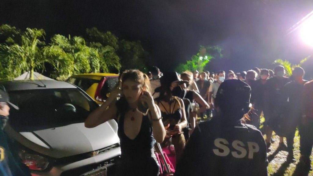 En el sitio, personal del Gobierno estatal también corroboró que se vendían bebidas alcohólicas y drogas, por lo que agentes de la Secretaría de Seguridad Pública (SSP) procedieron a la detención de cuatro personas, 2 de ellas por la comercialización de estos productos y los otros dos por la organización del evento.