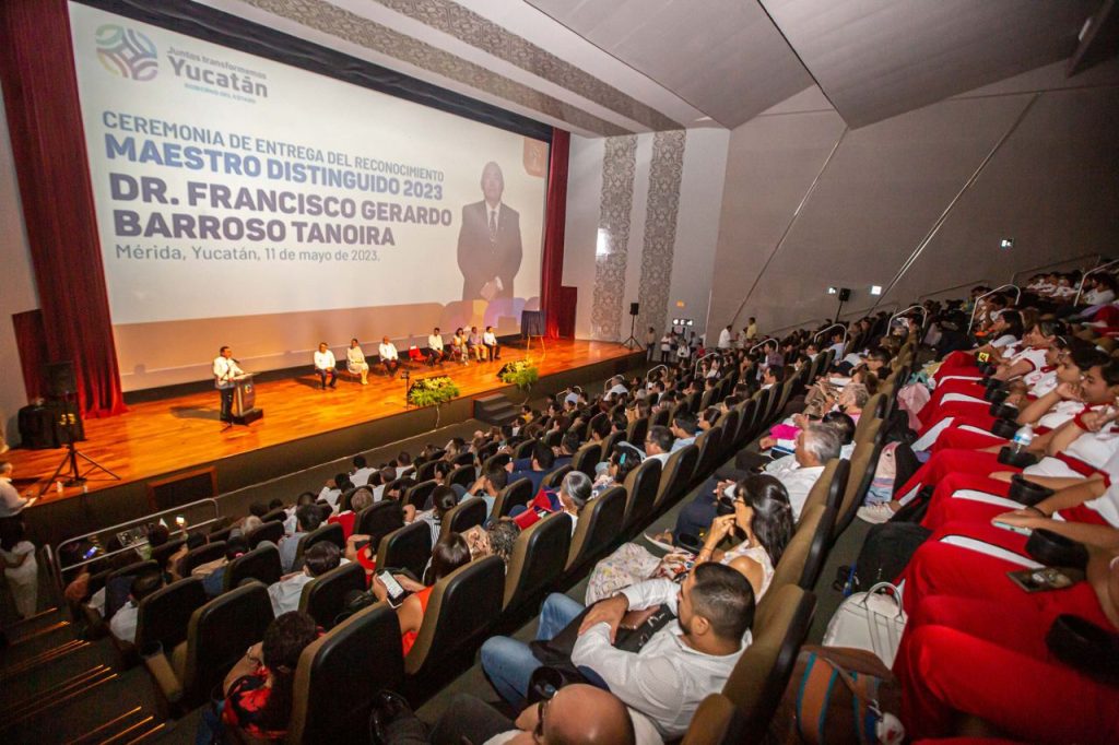 MÉRIDA, YUCATÁN, 11/05/2023. —”La educación es una vocación de permanente de inspiración”, expresó el Dr. Francisco Gerardo Barroso Tanoira, Maestro Distinguido 2023, durante su mensaje en el marco de la ceremonia encabezada por Liborio Vidal Aguilar, titular de la Secretaría de Educación de Gobierno del Estado (SEGEY).