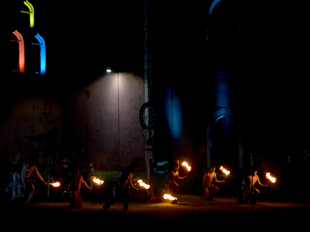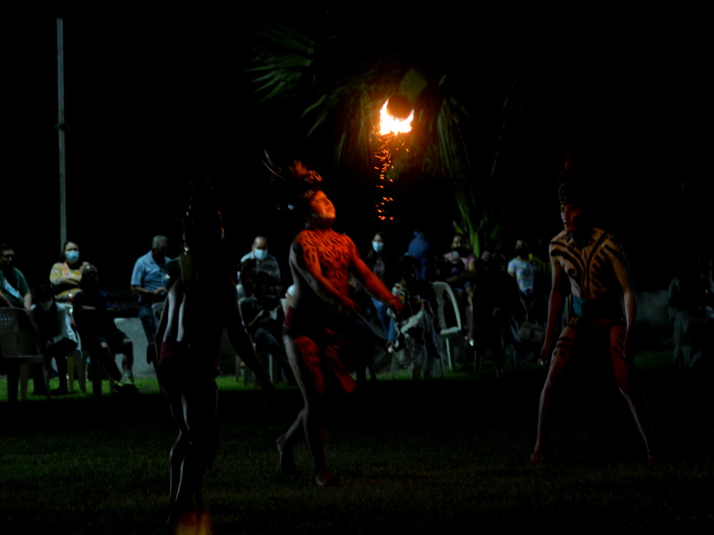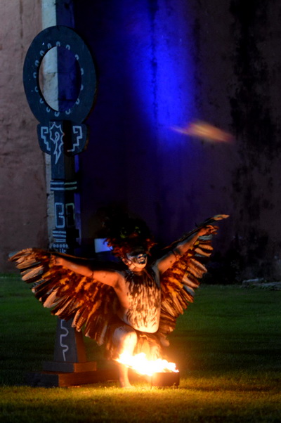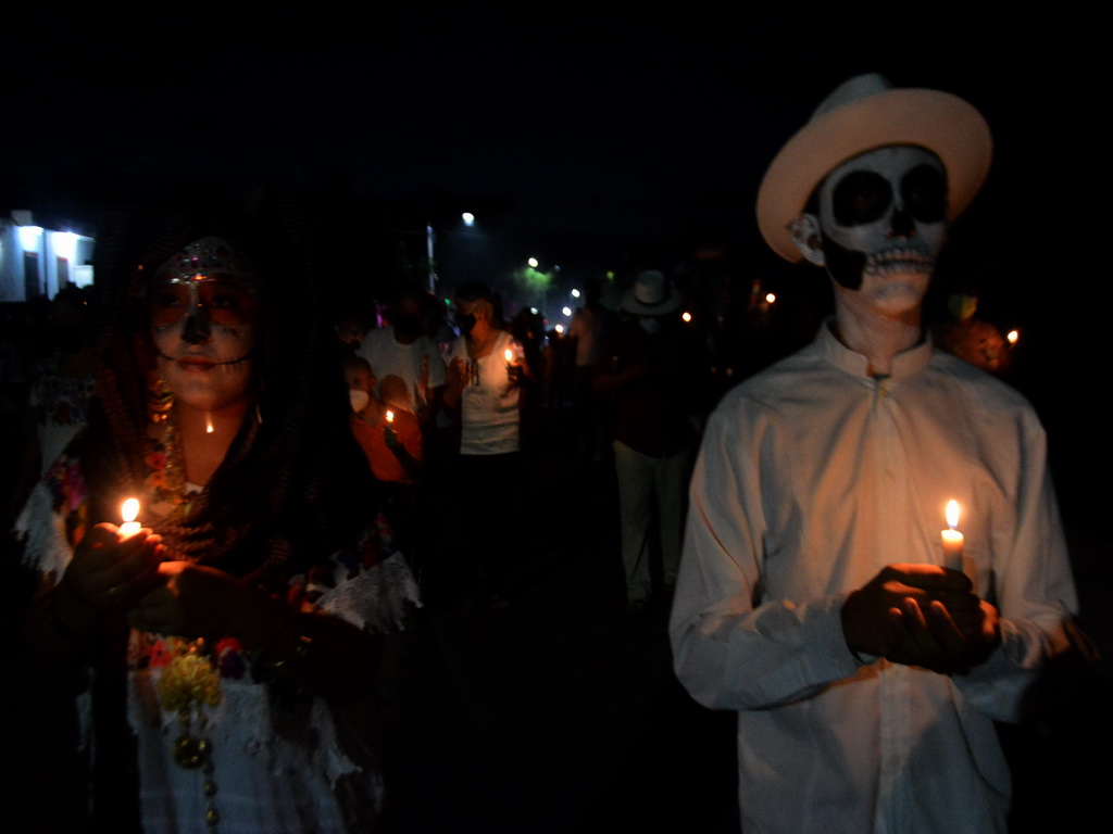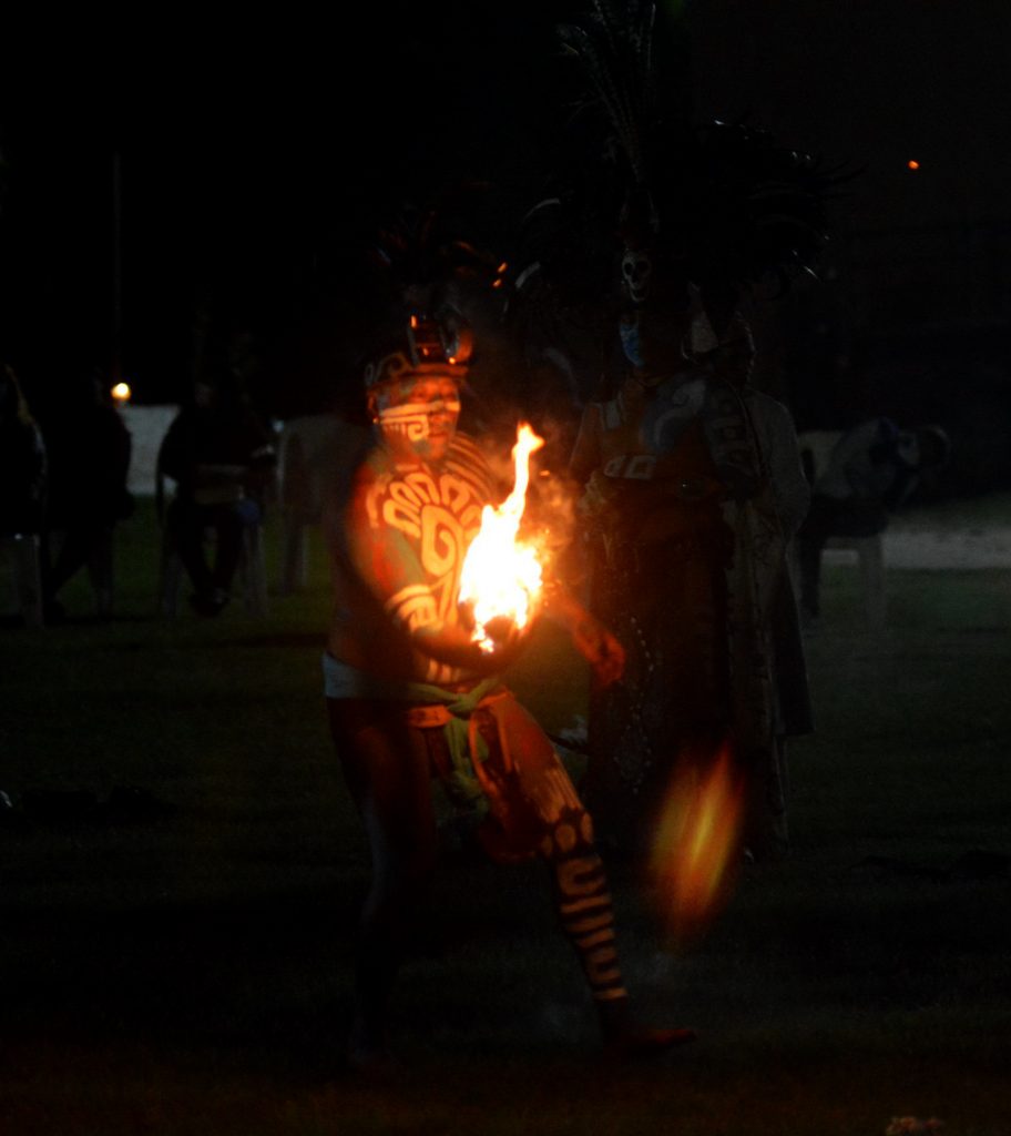 Luego, ya en alta de muertos, se contó una leyenda y se dio paso a un gran jardín de la iglesia del pueblo, donde estaban más de una docena de guerreros mayas, quienes jugaron al “Pok ta´pok” en medio de la obscuridad y sólo se apreciaba el fuego en la pelota que iban de un lado a otro.