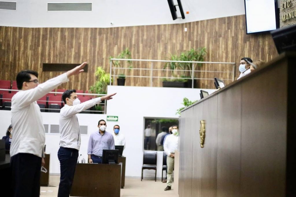 En la sesión, se llevó a cabo la rendición de compromiso constitucional de los nuevos integrantes del Consejo Consultivo del Instituto Estatal de Transparencia, Acceso a la Información Pública y Protección de Datos Personales (INAIP), Ángel Rodríguez Aquino y César Prieto Zaldívar.