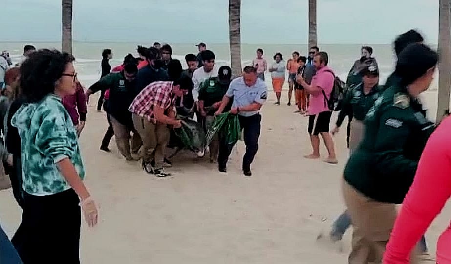 El delfín fue encontrado por salvavidas de “Blue Flag”, quienes reportaron a la Policía Ecológica el hecho, para que procedieran con el protocolo de auxilio, en casos de varamiento de animales marinos, hasta entregarlo al personal de PICMMY.