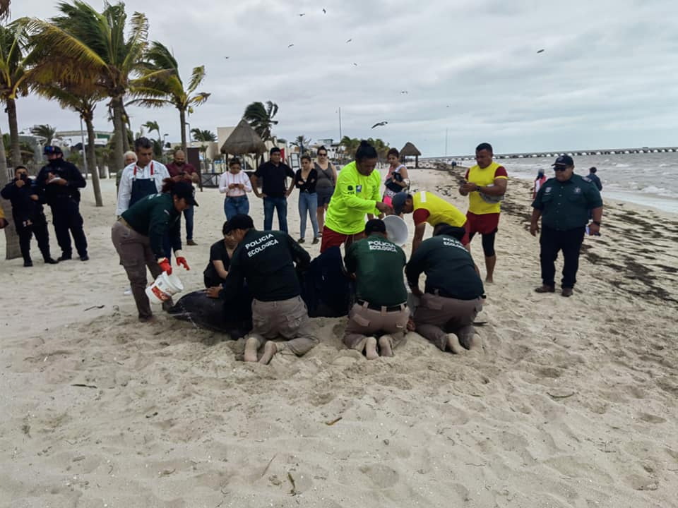 Para tal fin, la Policía Ecológica, PICMMY y la Marina Armada procedieron al protocolo de regreso al mar.