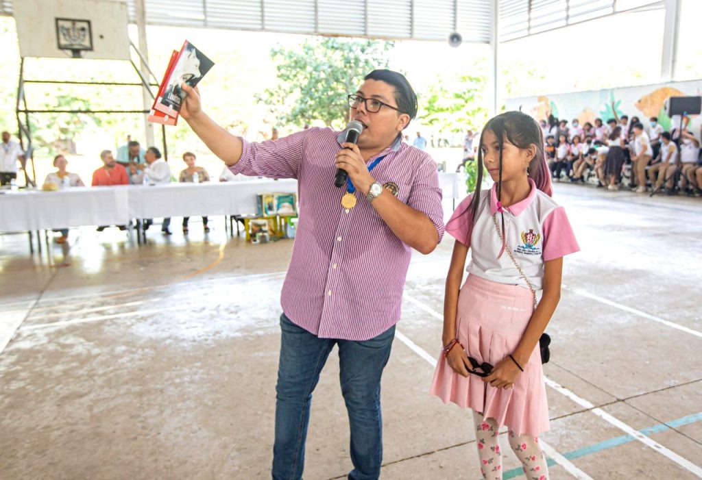 A través de una charla dinámica, que incluyó el obsequio de libros, Lara Quevedo destacó que, con el aprovechamiento de la lectura y la participación de la comunidad educativa, se puede construir una cultura de la paz en los entornos escolares.