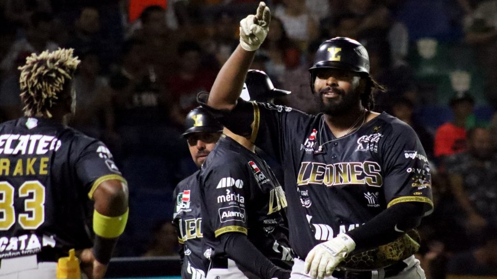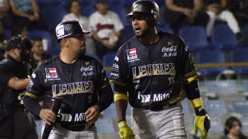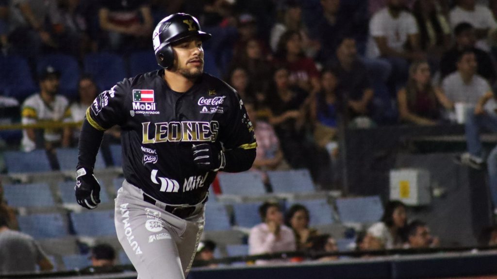 LEÓN, GUANAJUATO, 22/04/2023. —El inicio del torneo de la Liga Mexicana de Béisbol (LMB) para Los Leones de Yucatán, arranca con un segundo triunfo, ante Los Bravos de León, llevándose la serie, pero falta el tercer juego.