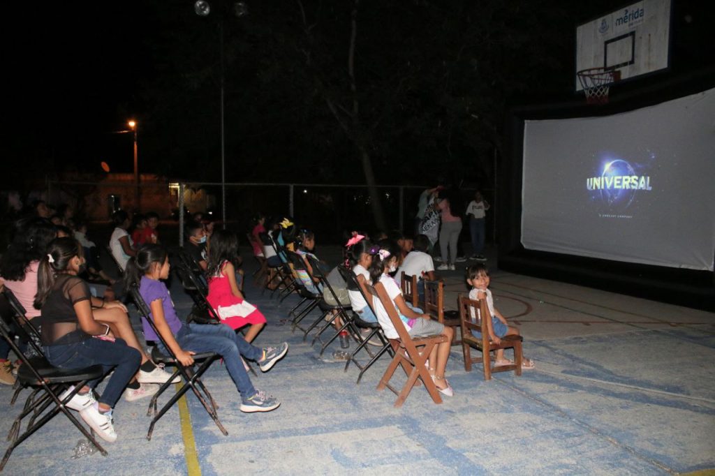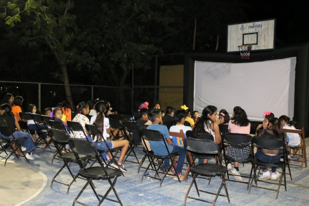 De igual forma, niños del poniente de Mérida, de la comisaría de Susulá, participaron en esa misma actividad, donde jugaron y participaron en concursos, rieron con un espectáculo infantil, para finalmente ver una película en la pantalla gigante que se puso en el parque de su comunidad.