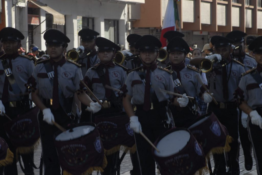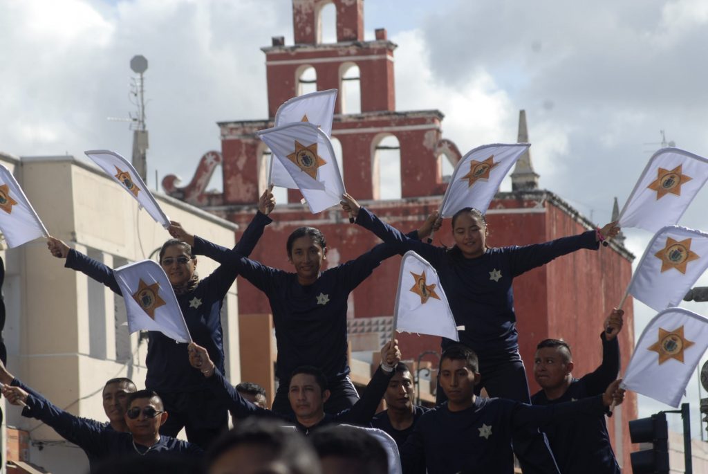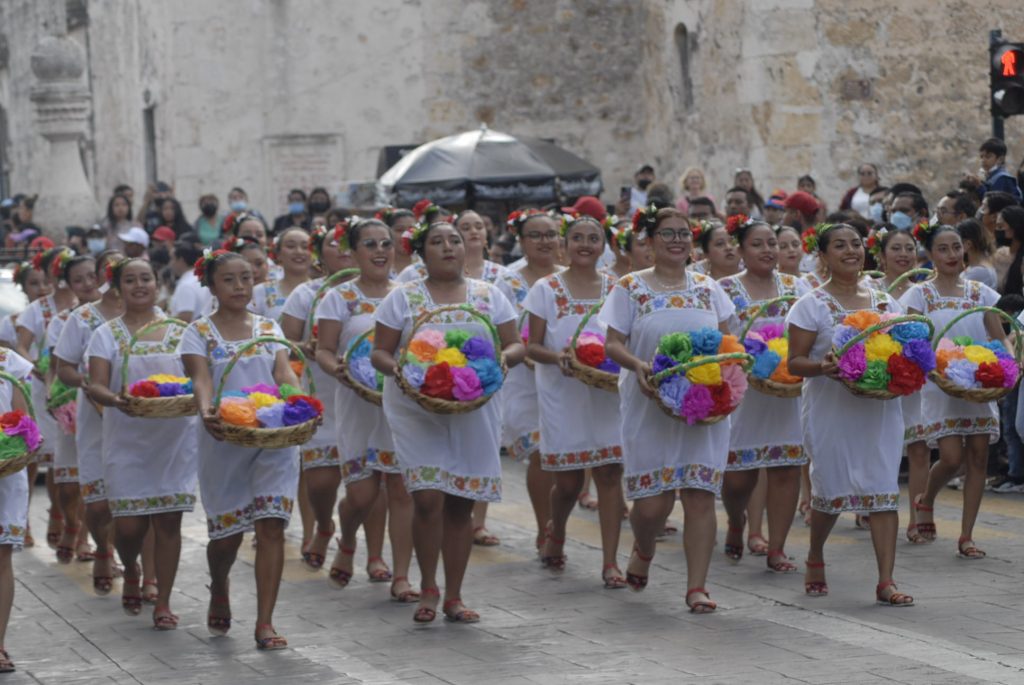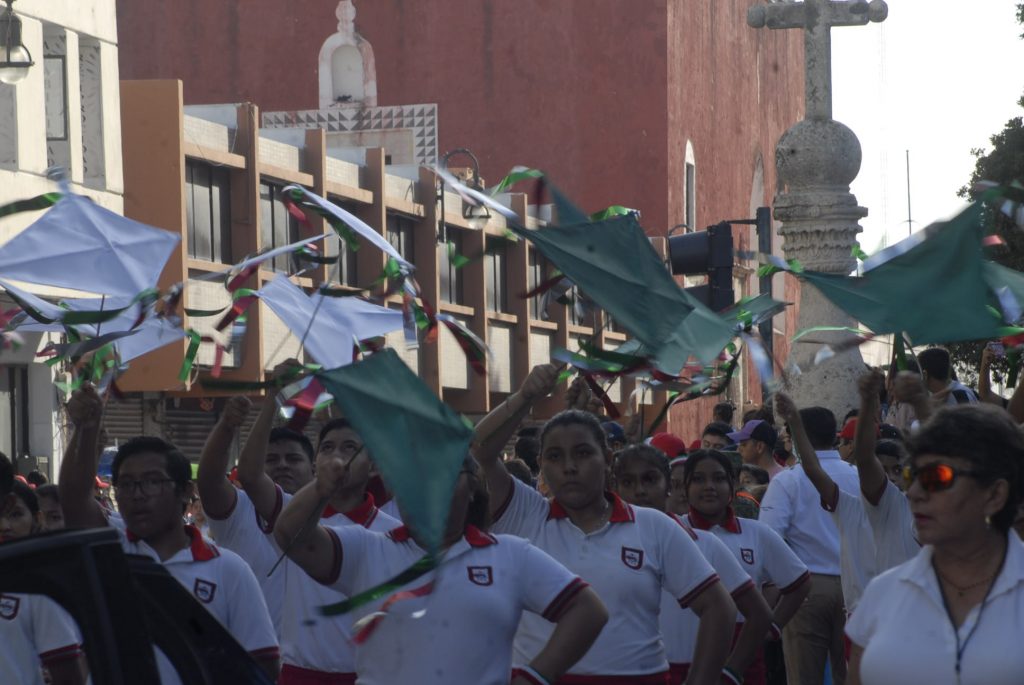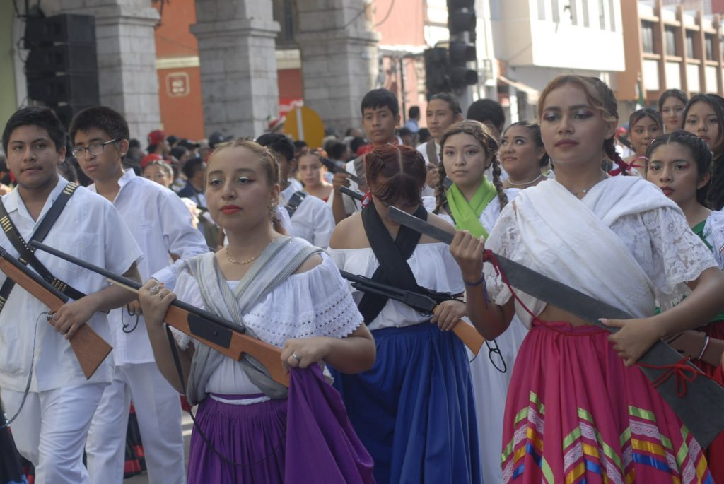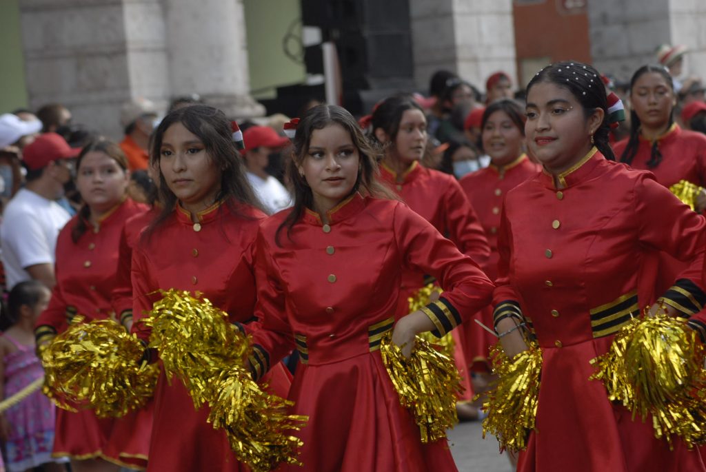 Animado, colorido, aplausos, así como la realización de pirámides humanas, tablas rítmicas, acrobacias y estampas alusivas a la Revolución Mexicana durante el desfile, presenciaron cientos de familias en Centro de Mérida.