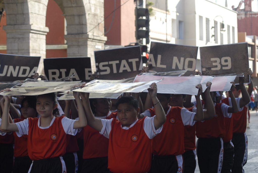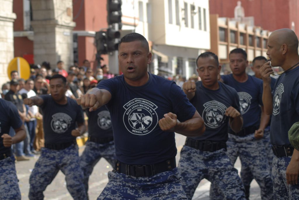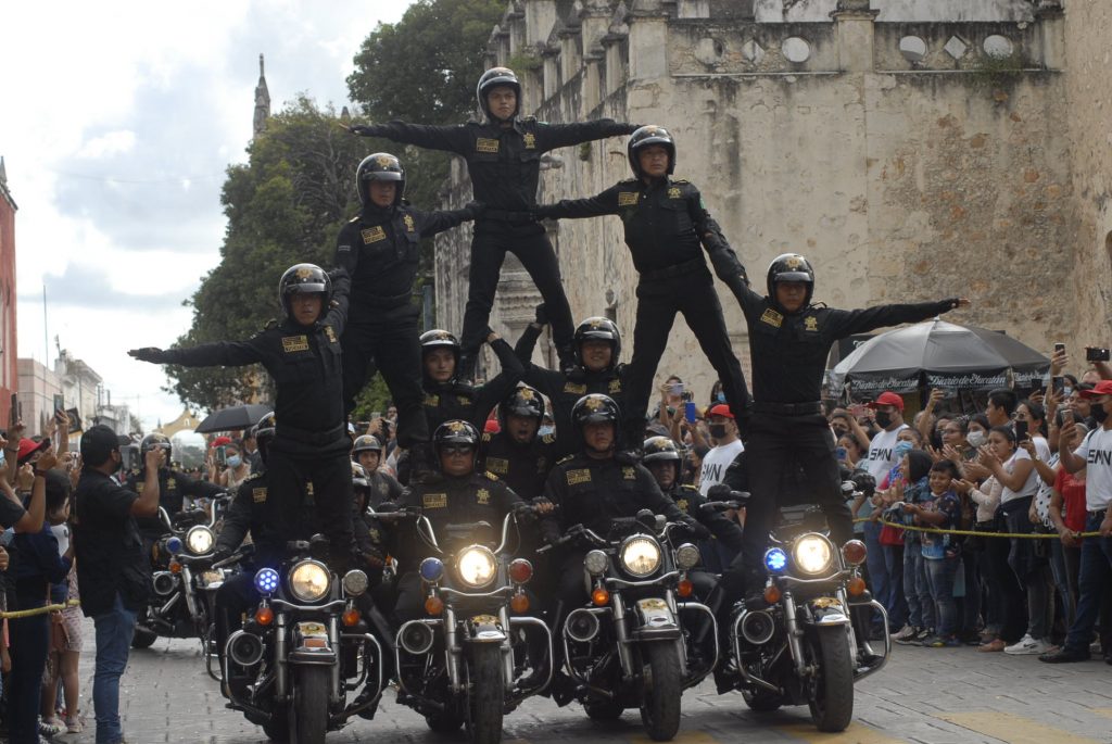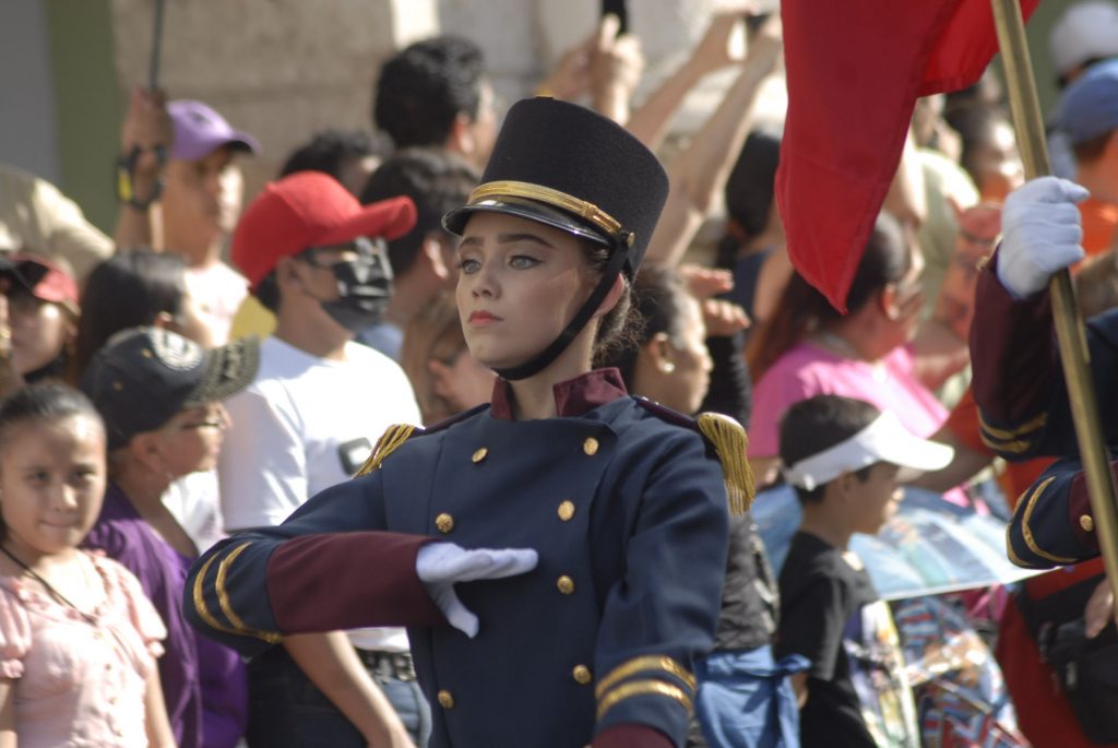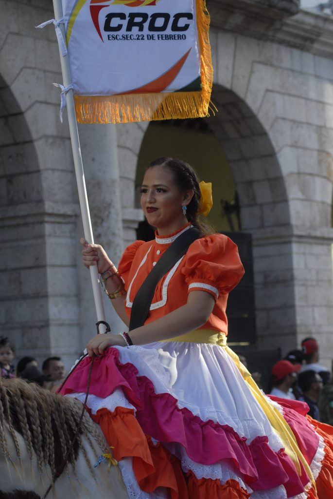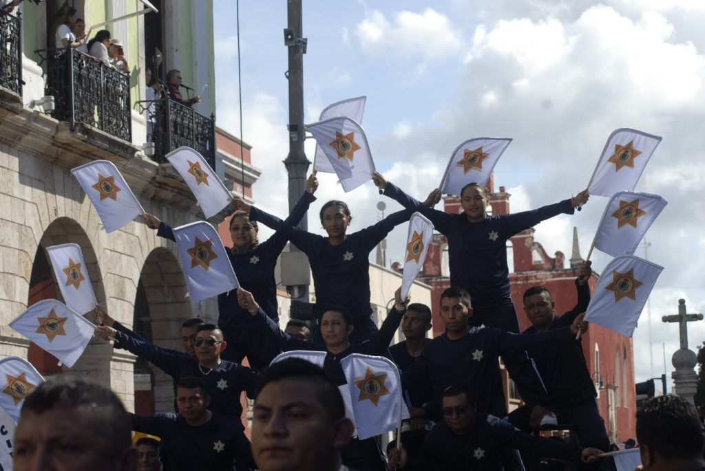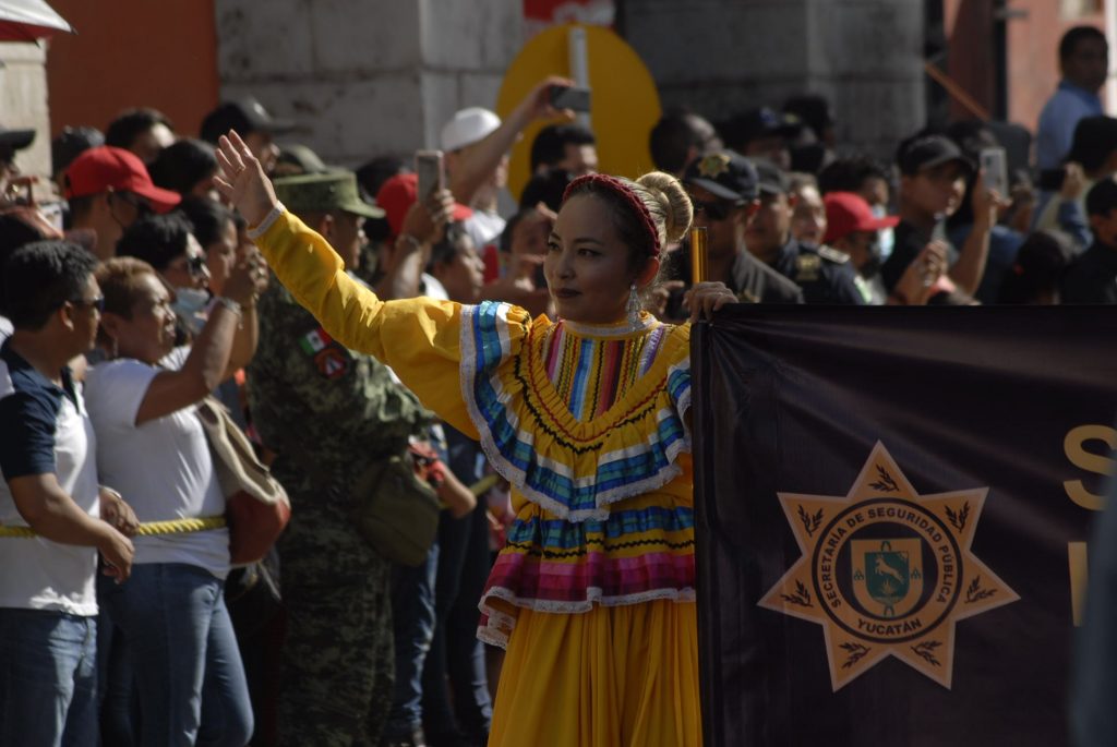Animado, colorido, aplausos, así como la realización de pirámides humanas, tablas rítmicas, acrobacias y estampas alusivas a la Revolución Mexicana durante el desfile, presenciaron cientos de familias en Centro de Mérida.